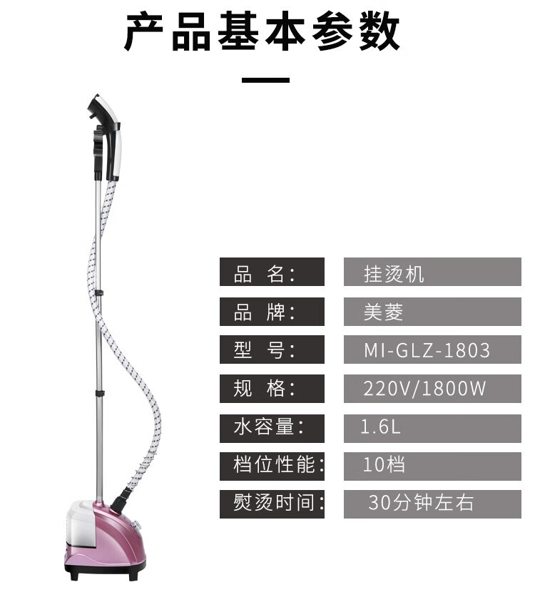 美菱(MeLng)电熨斗挂烫机 增压蒸汽挂烫机 企业业务 美衣顺滑 多档位 1.6L智能控温 紫色 MI-GLZ-1803