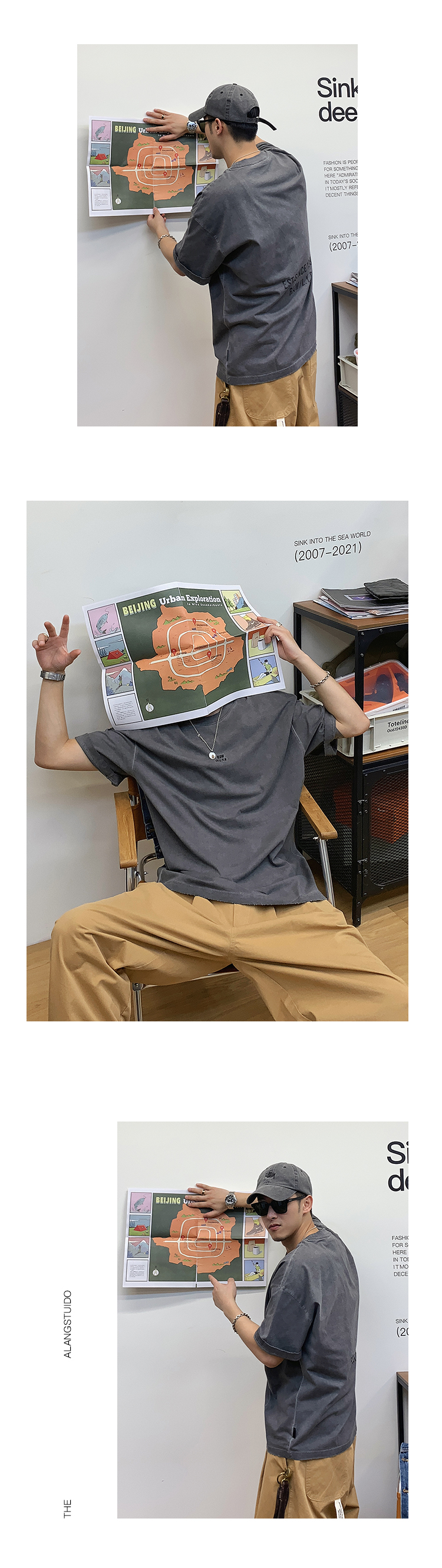 徐太浪美式复古水洗高街短袖t恤男vintage古着潮牌潮流夏季半袖潮