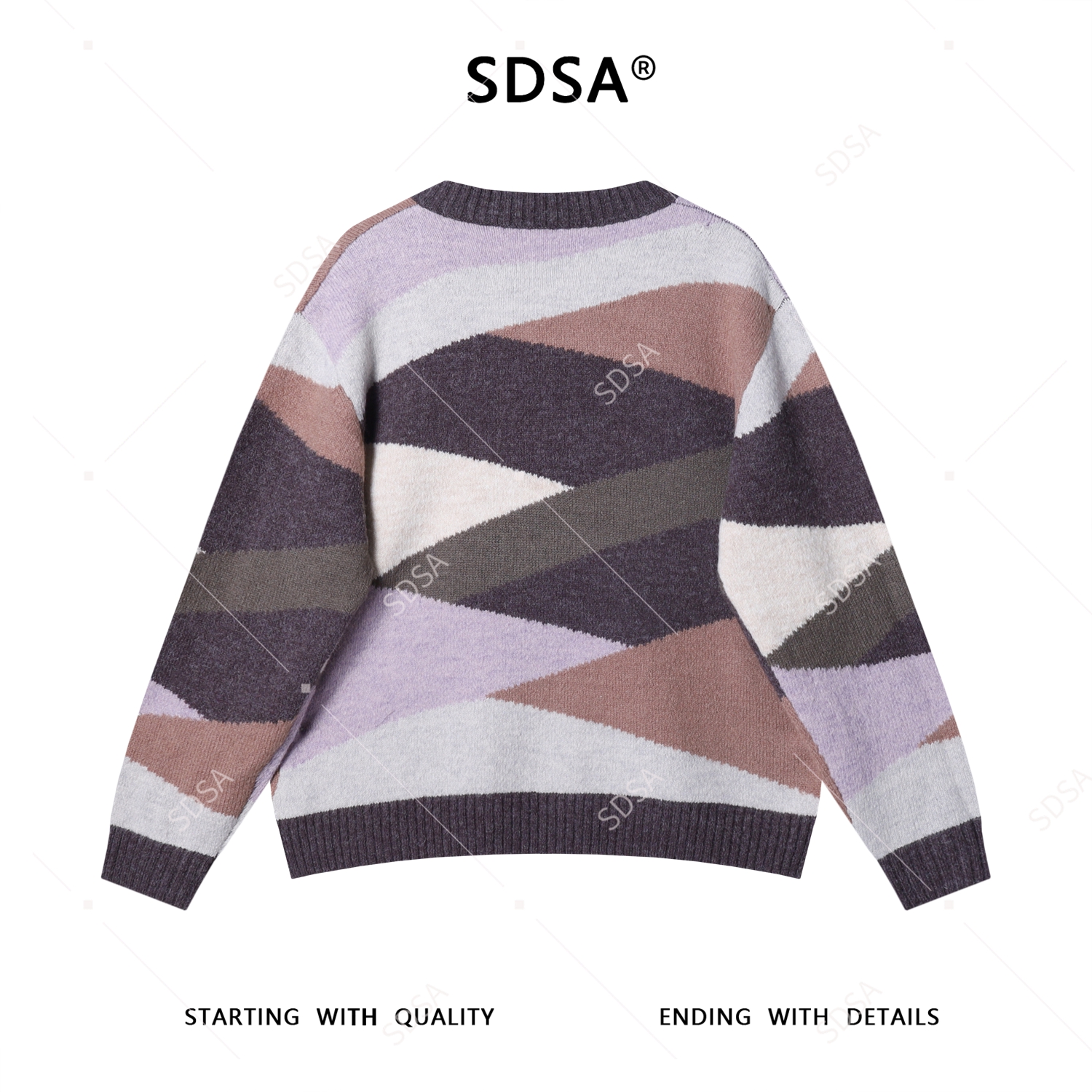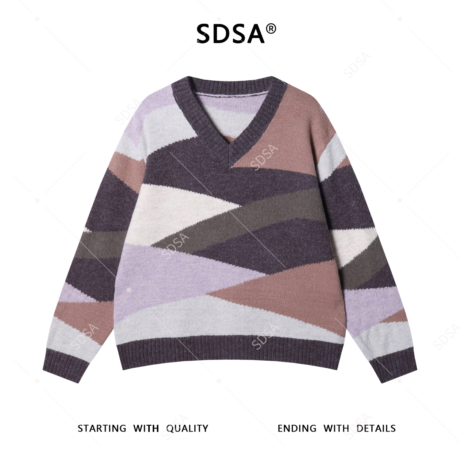 72616SDSA男士秋冬新款痞帅男装慵懒松弛感撞色V领针织衫百搭套头毛衣