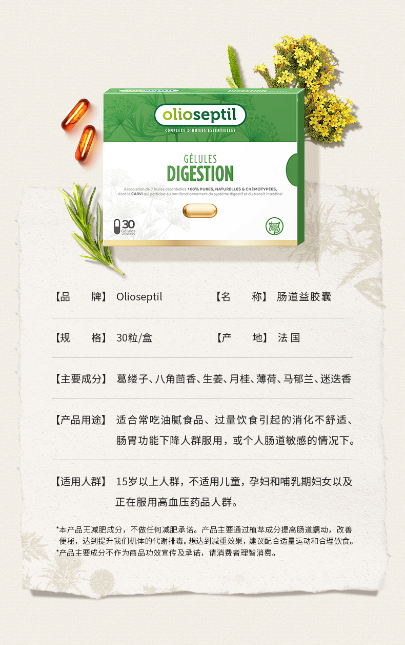 olioseptil久木之名法国肠道益口服精油消化排浊调理肠胃保健便秘润肠