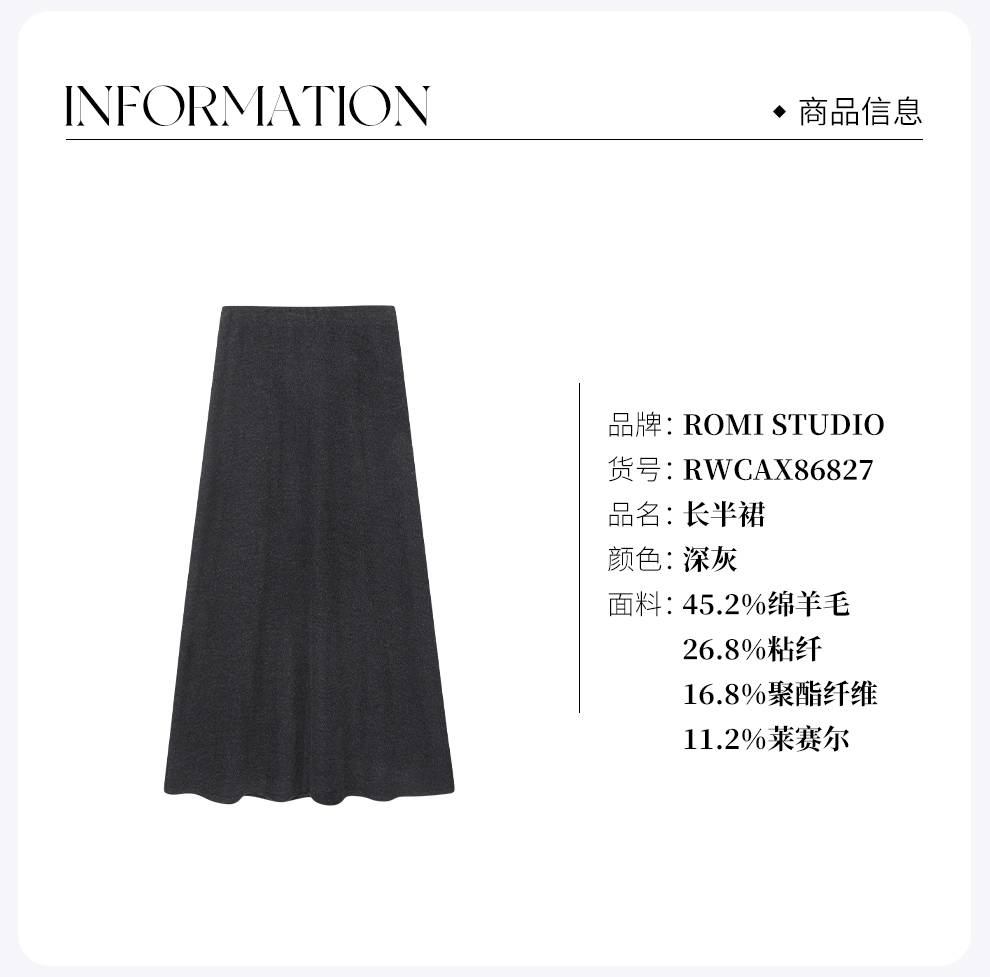 ROMI STUDIO“云感徜徉”绵羊毛混纺优雅软糯微A半身裙 RWCAX86827