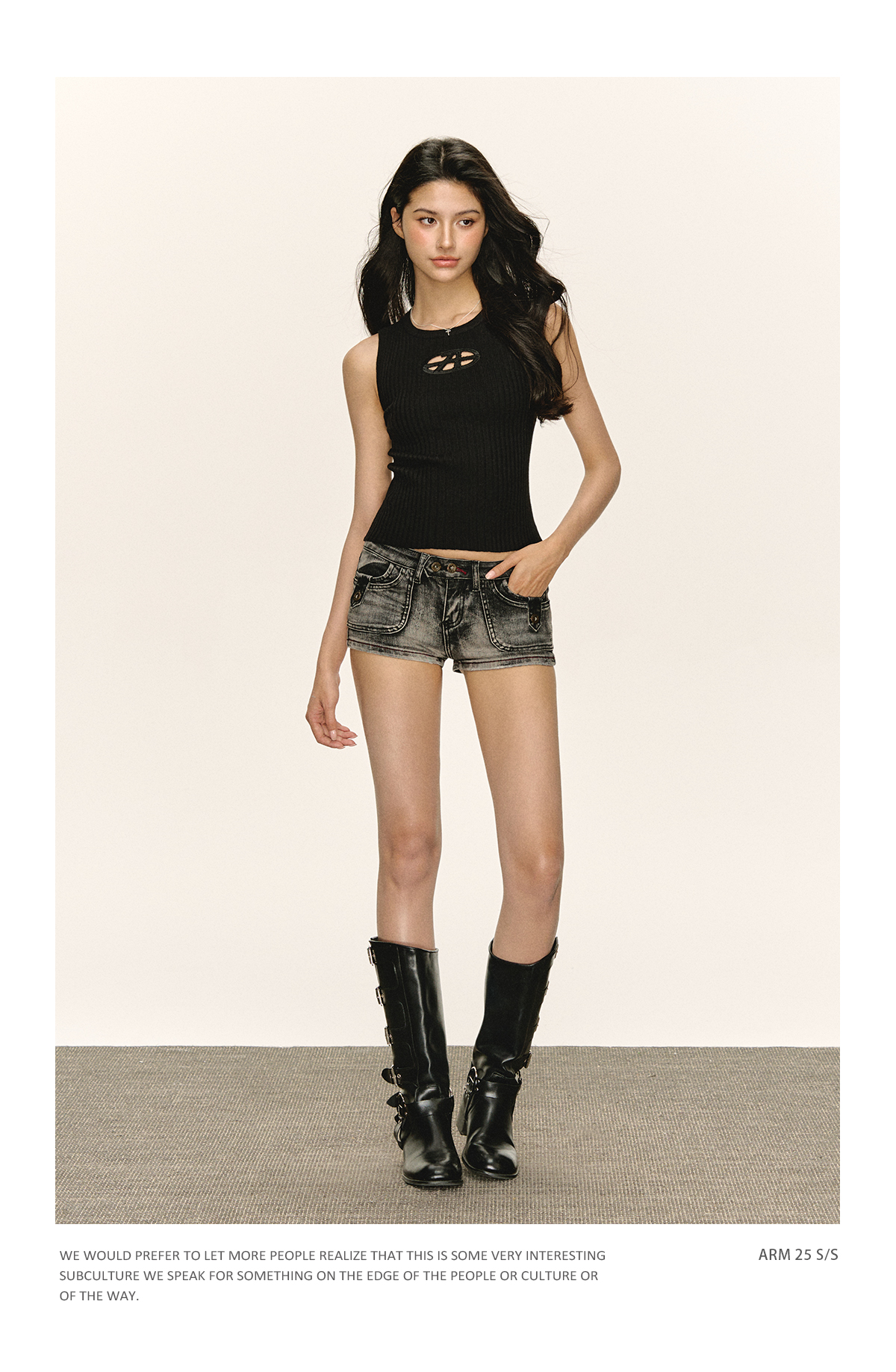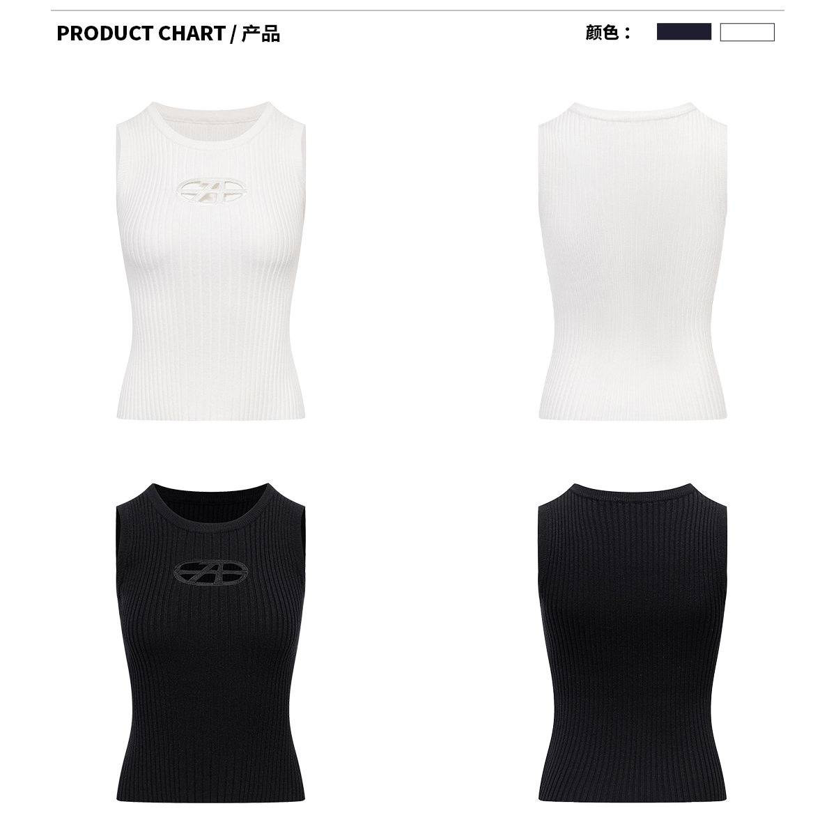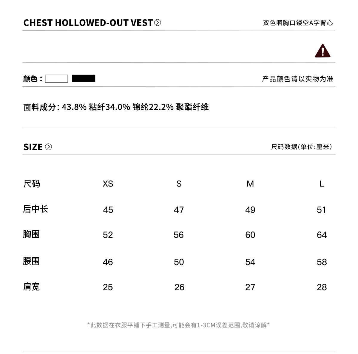 Ariseism 美式复古双色胸口镂空a字背心女夏季新款修身上衣