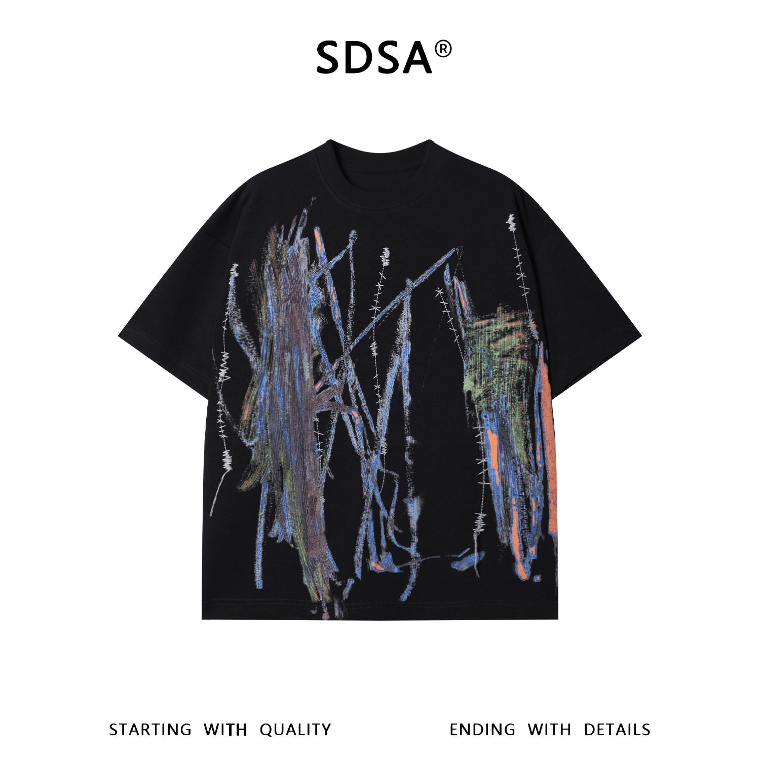 68520SDSA男装2026新款高贵轻奢潮牌抽象涂鸦设计圆领短袖T恤百搭时尚