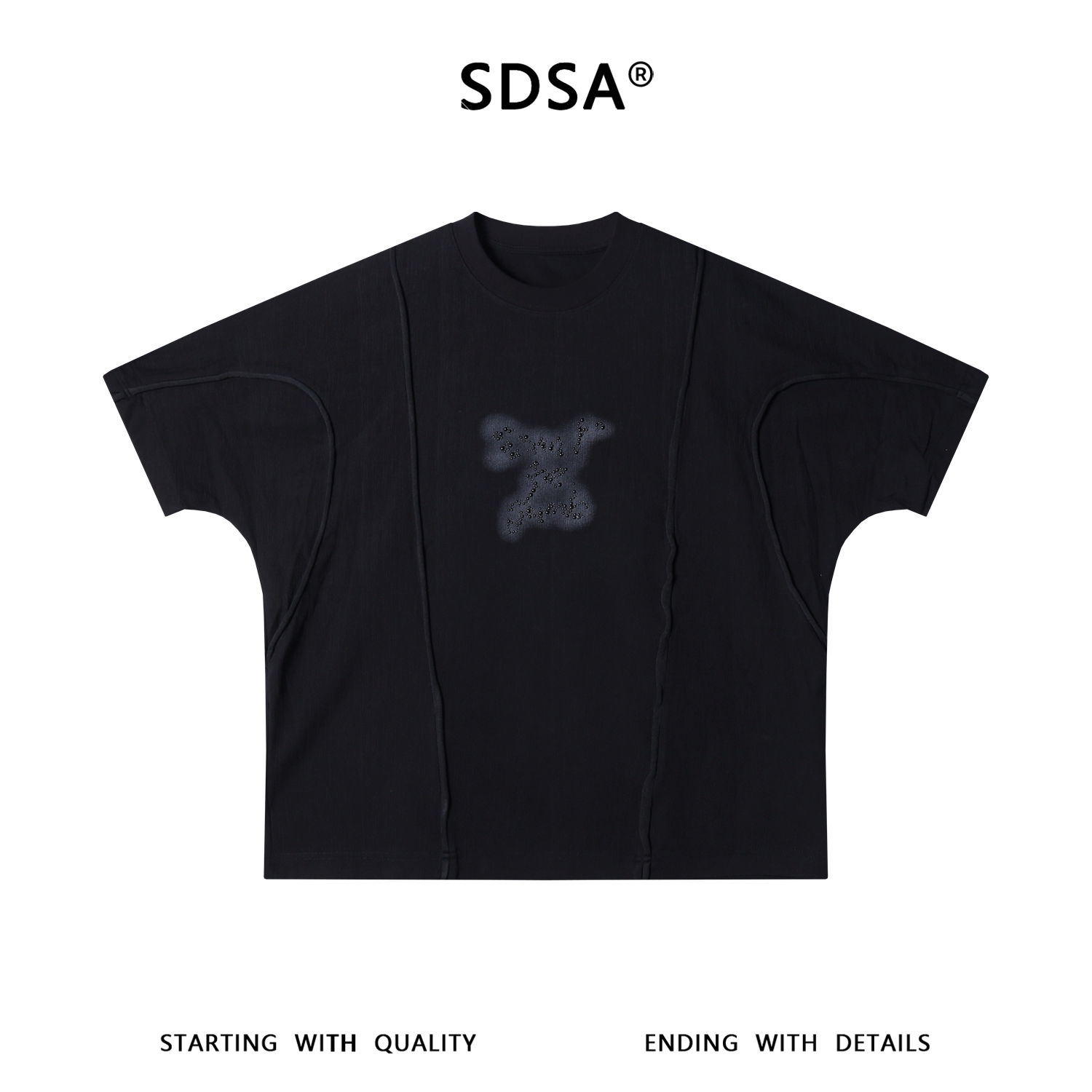 SDSA男装2026新款高贵轻奢明线分割渐变钉珠宽松蝙蝠袖T恤百搭