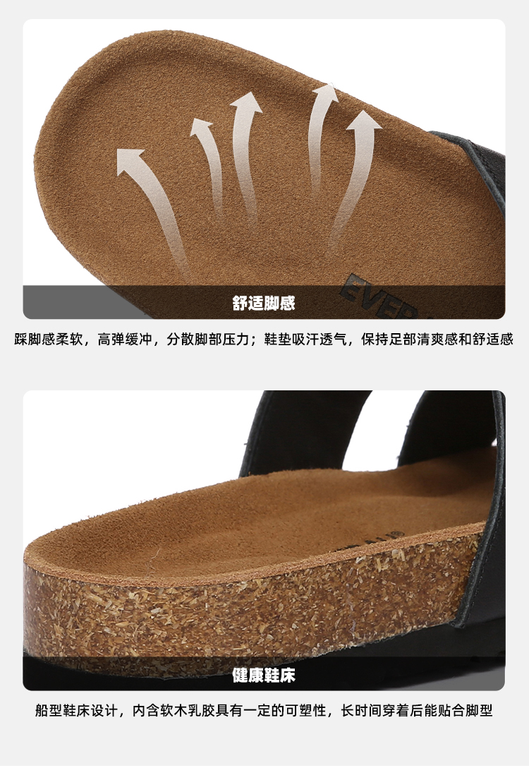 【澳洲品牌】EVERAU拖鞋女软木拖鞋夏简约时尚潮流ins外穿平底沙滩鞋EA7068