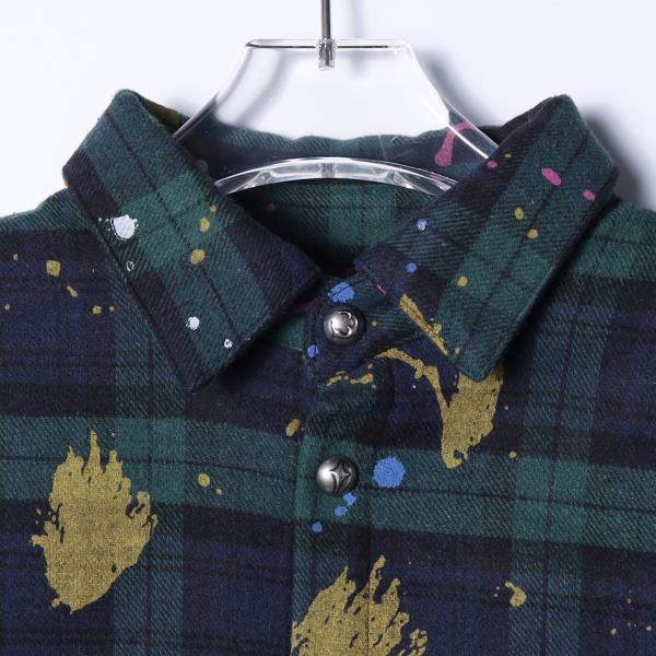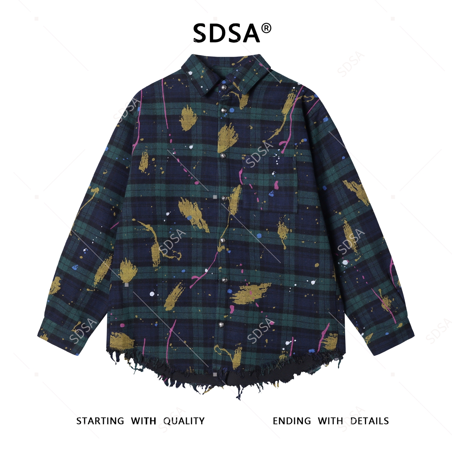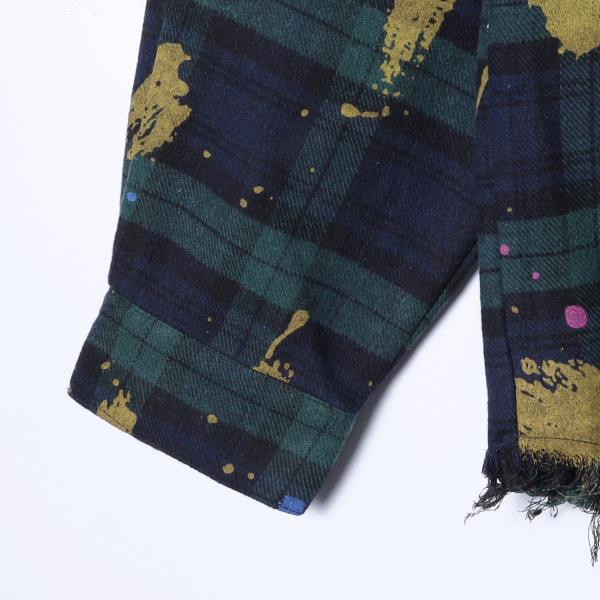 80286SDSA秋冬新款痞帅男装美式泼墨流苏设计纽扣翻领长袖衬衫百搭宽松