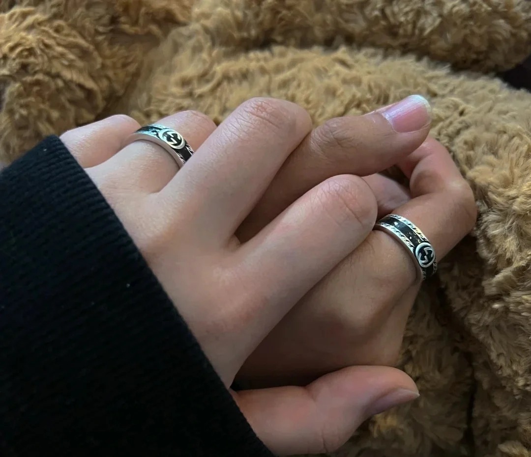 Gucc* 互扣式珐琅戒指,于文文同款大理石纹很有搭配时尚感,花纹真的很精细!整体925纯银特别有份量,日常戴在手上非常出彩