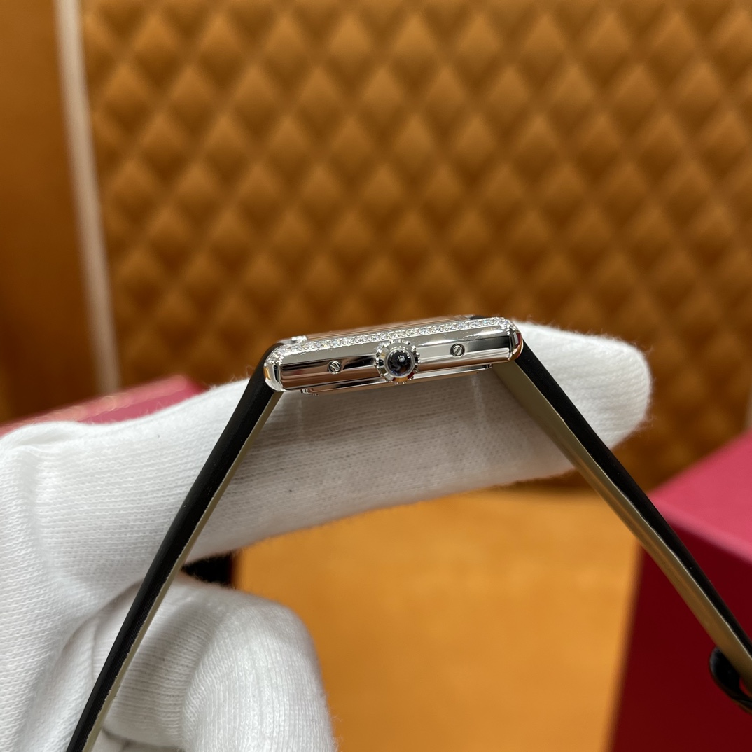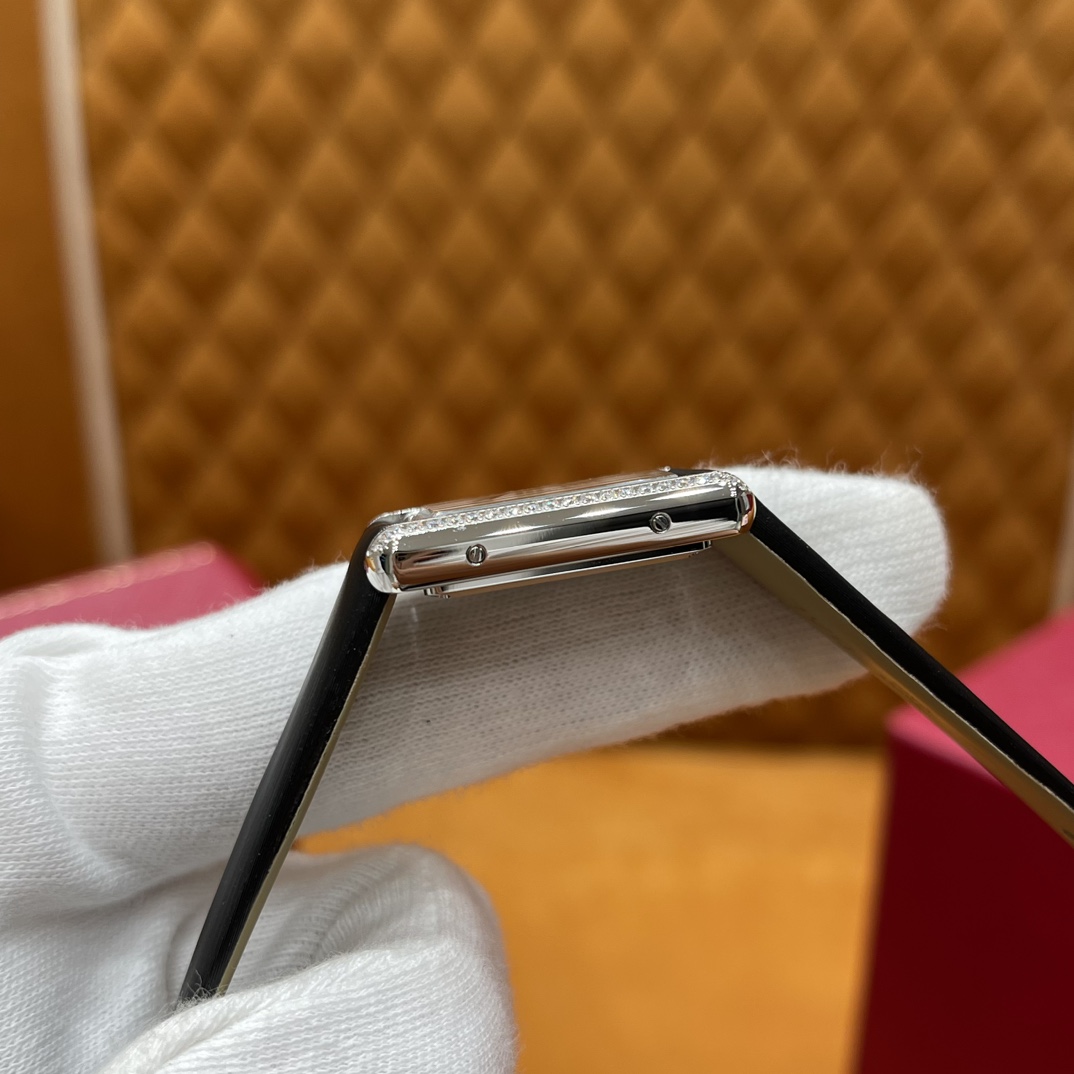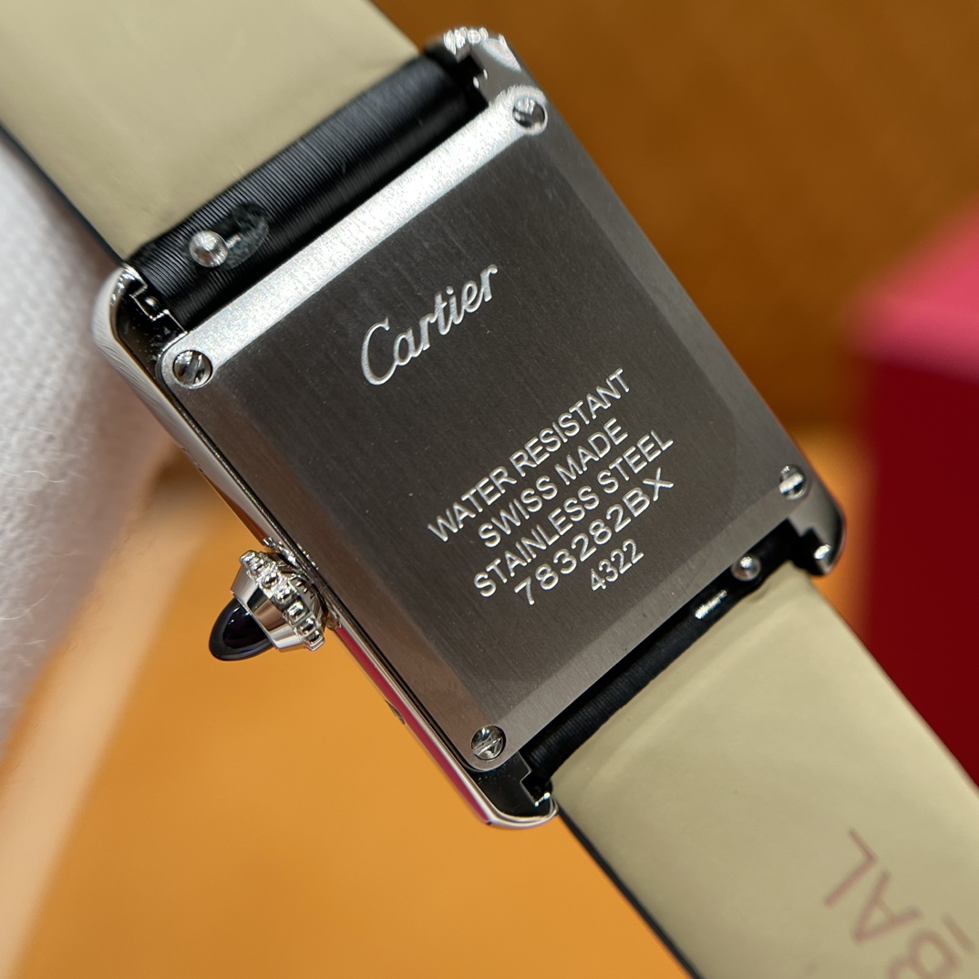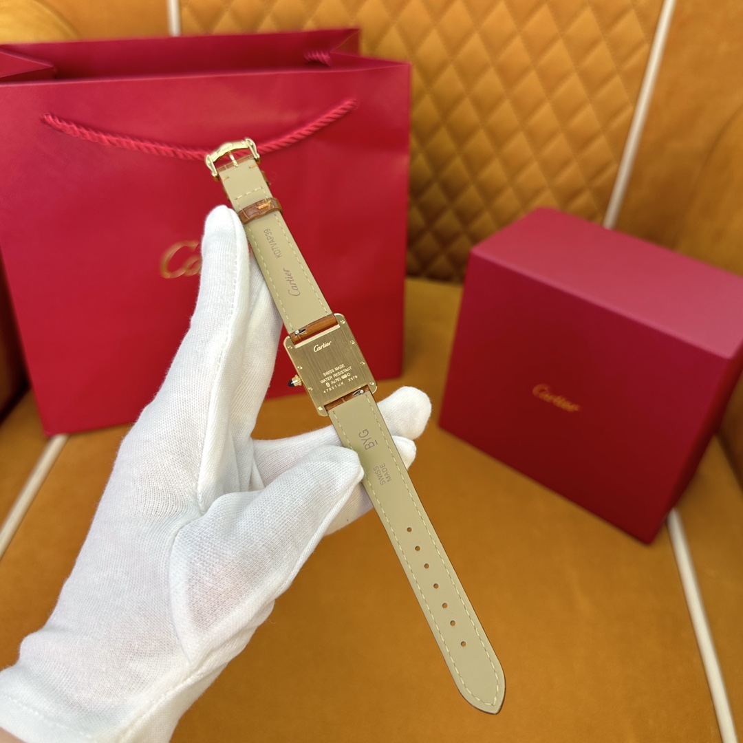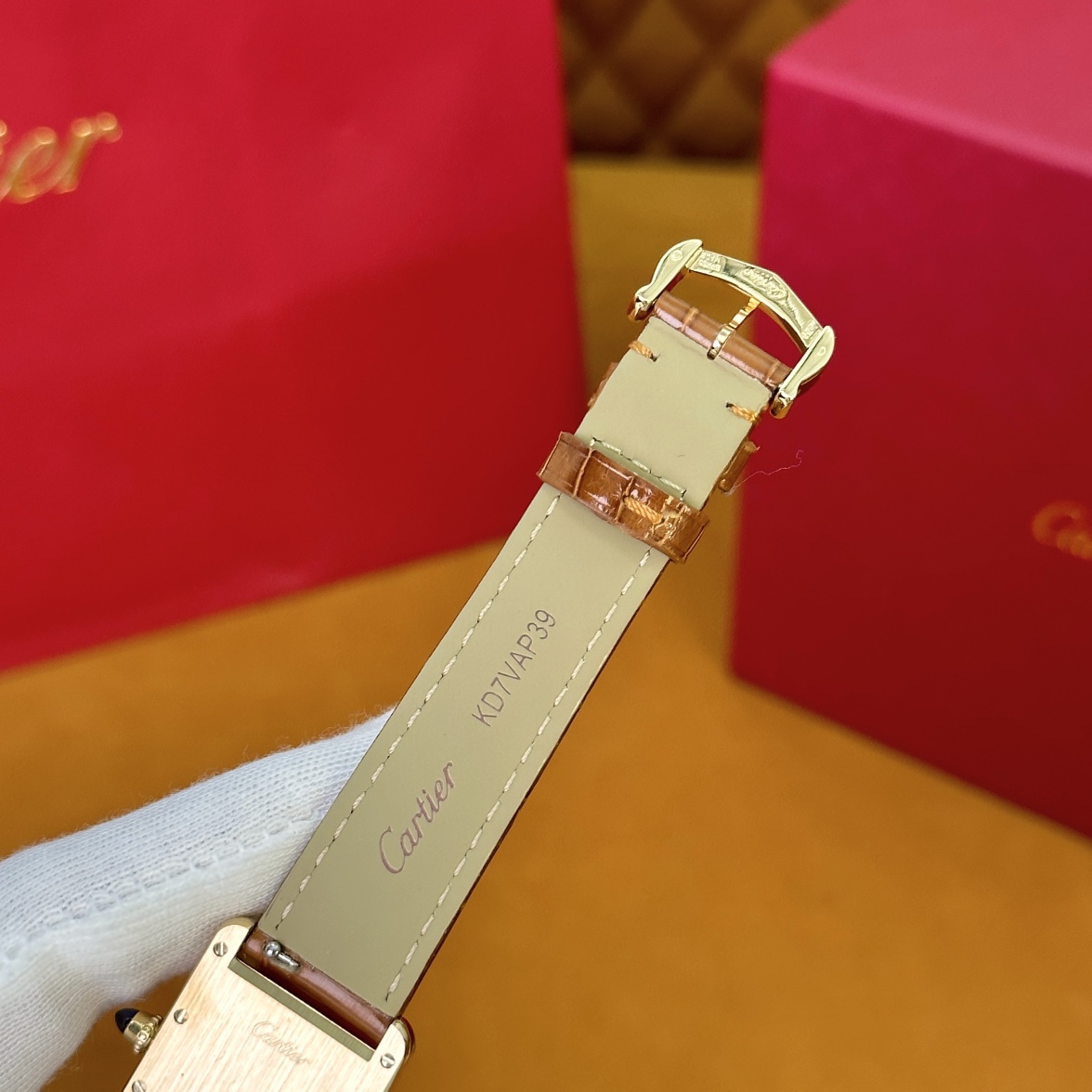 🏷️坦克系列 型号:W1529856 原版石英瑞士进口超薄高效能机芯 # 采用18K黄金表壳,珠光镀银白色方形表盘,瑞士剑形指针,特别完美,针轴光亮!针轴也是符合瑞士工艺要求,印字特别清晰,刻字完美,防刮损防指纹蓝水晶玻璃,生活防水。 表冠纤细,倒角打磨的特别精细~镶嵌一颗凸圆形合成尖晶石! 棕黄色鳄鱼皮表带-可拆卸替换式表带,与原版一致的快拆表带装置 多种颜色皮带和钢带都可以互相替换,拆卸简单易操作。 尺寸:22X29.5mm