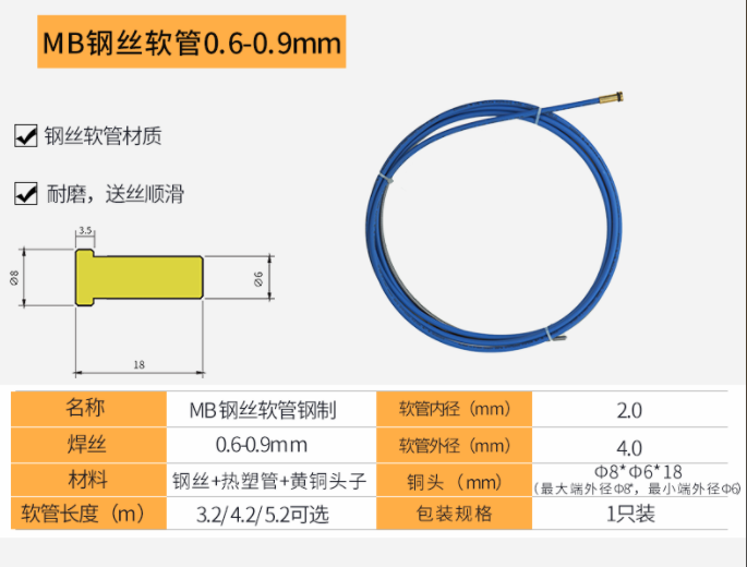 上海沪工二保焊枪配件【送丝软管欧式MB】0.6 0.9 1.2导丝管气保焊导丝弹簧管