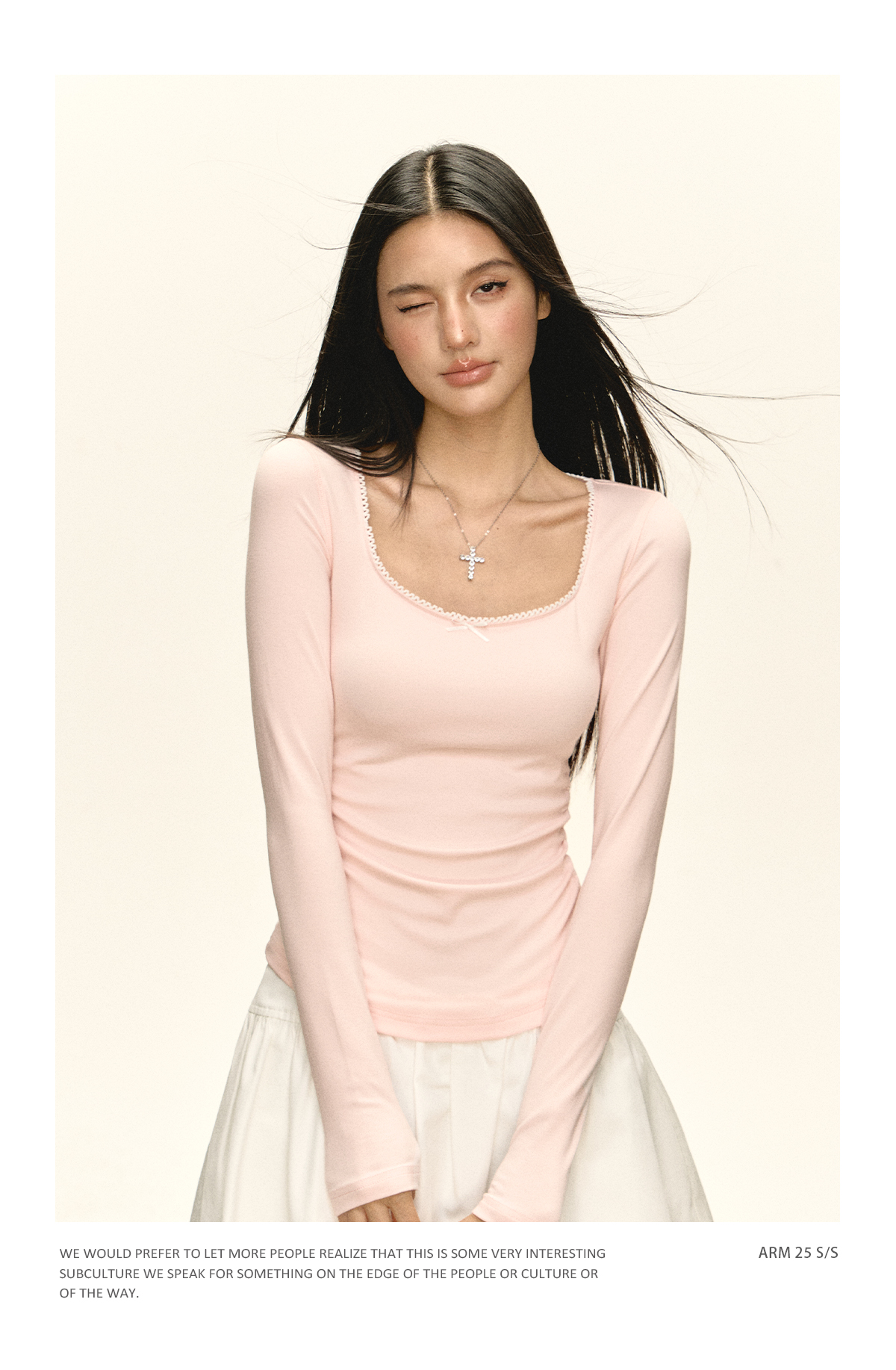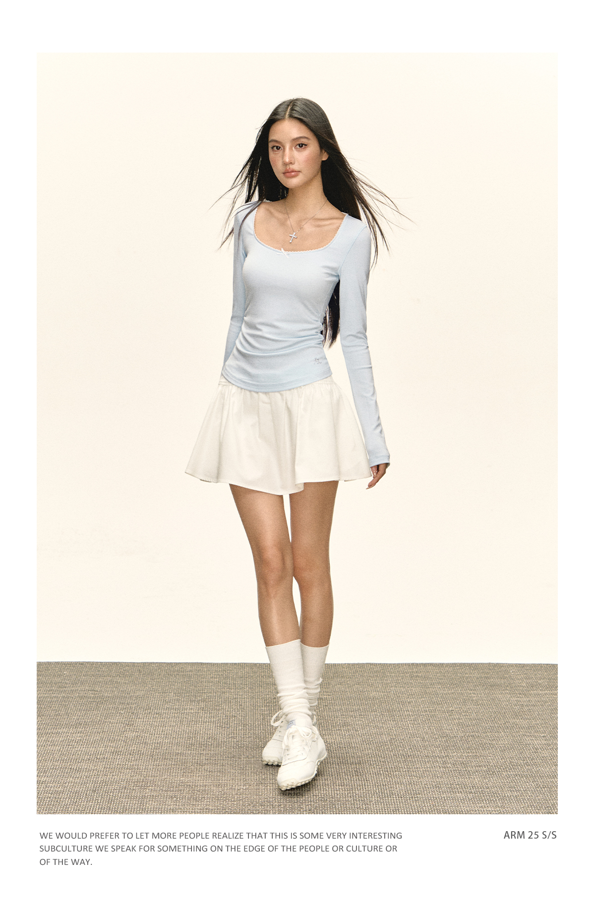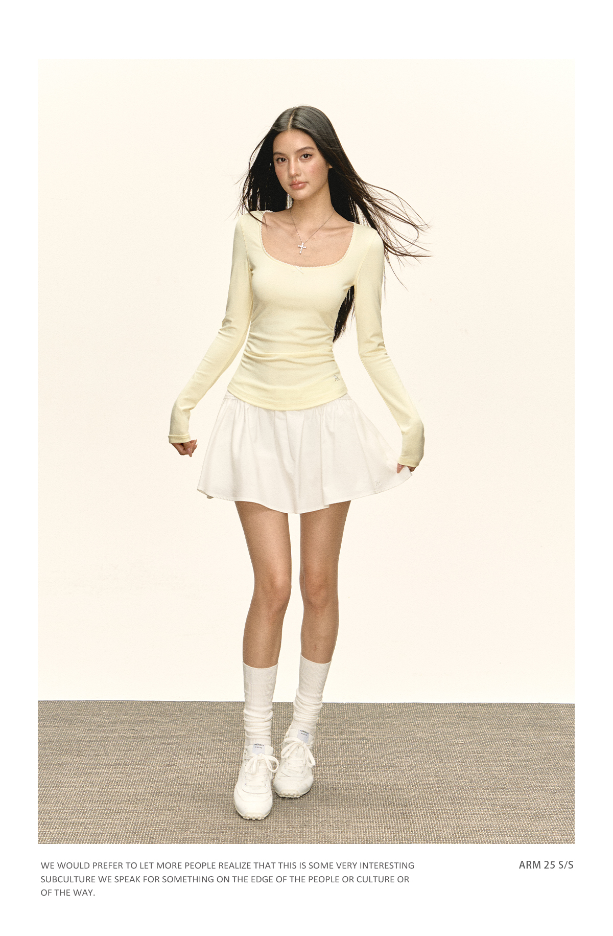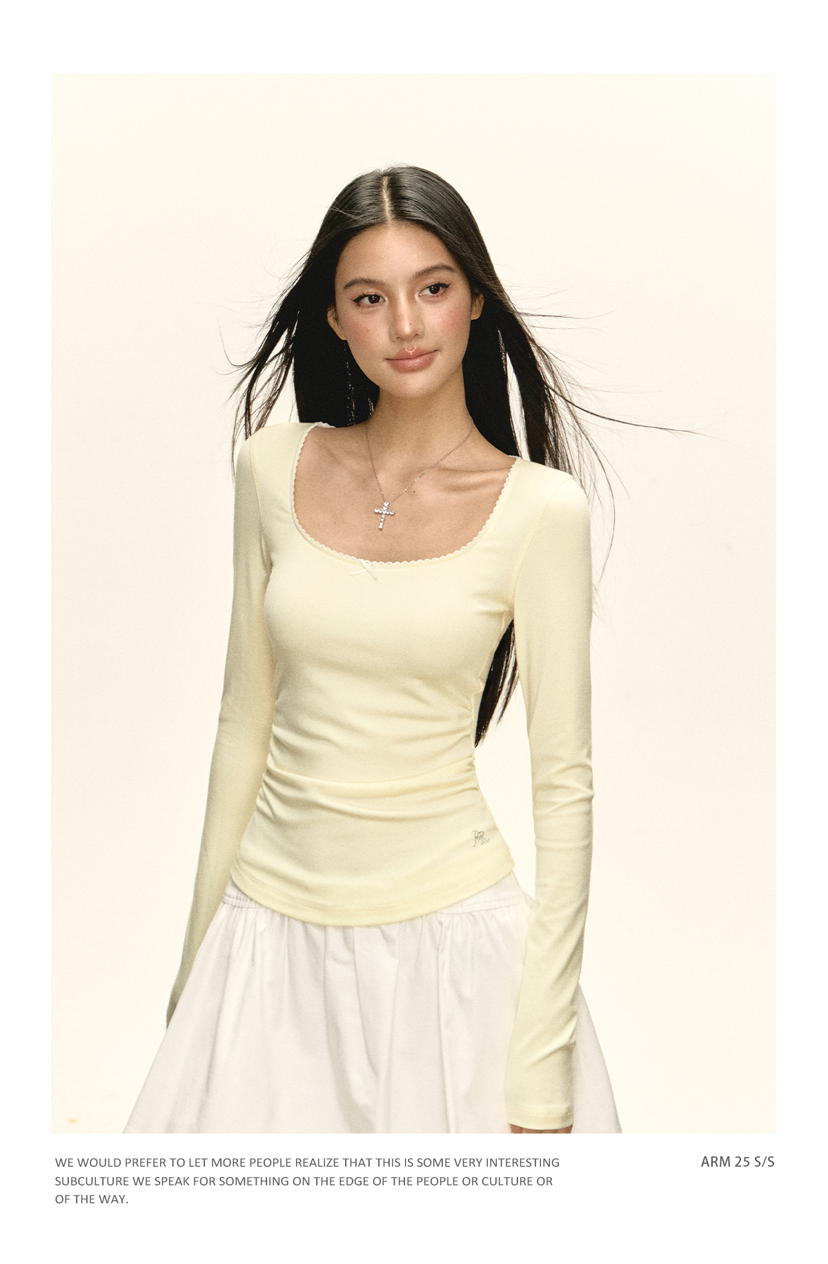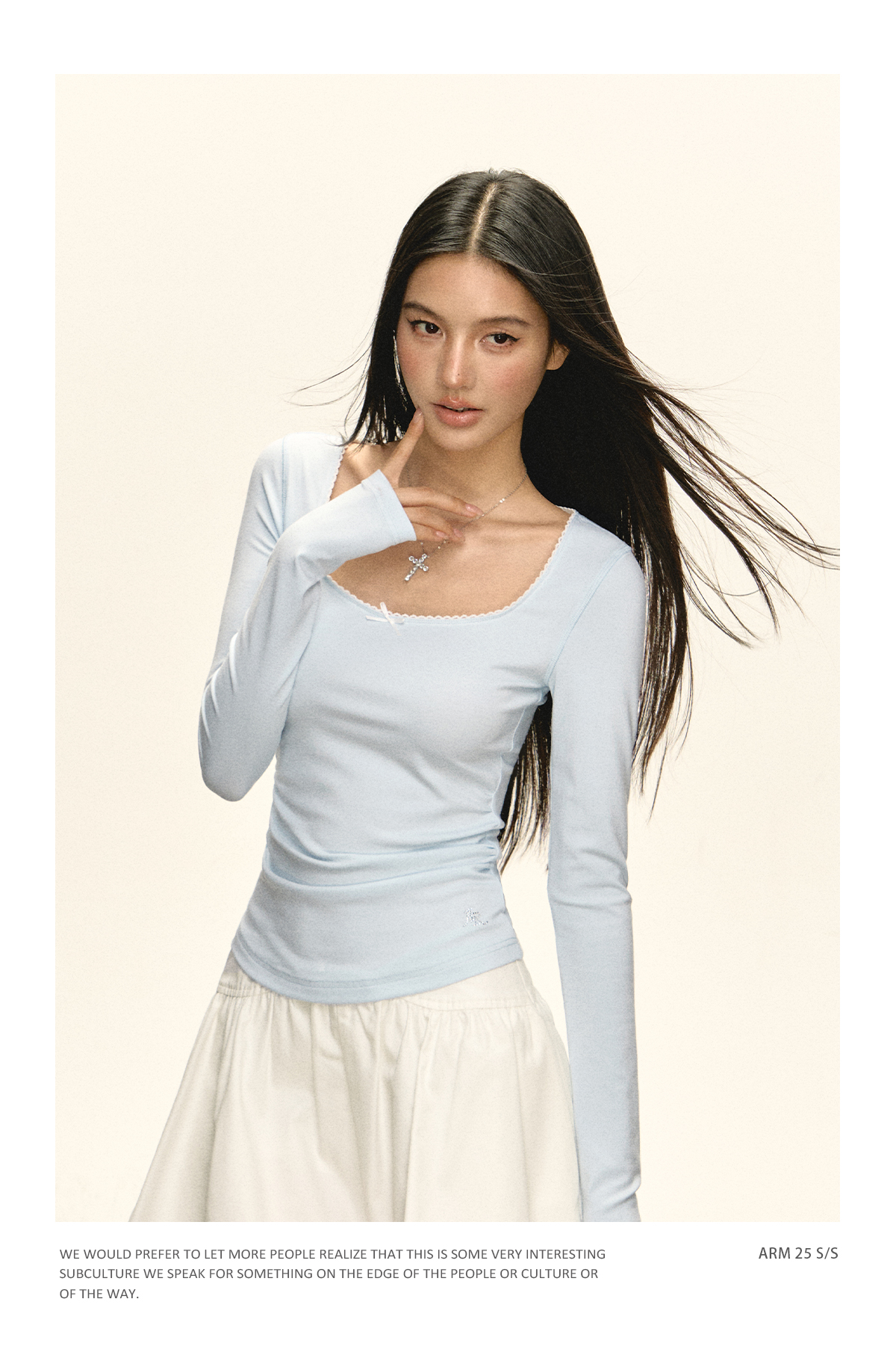 Ariseism 美式复古4色u领长袖t恤女秋季新款上衣