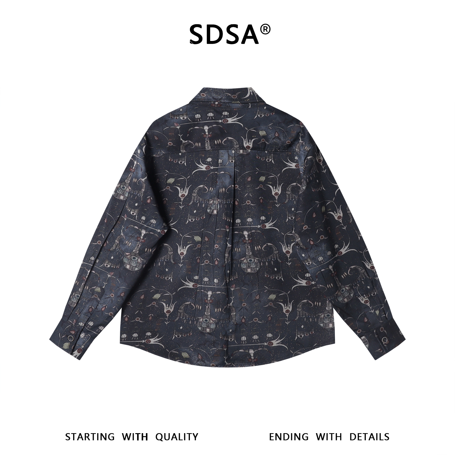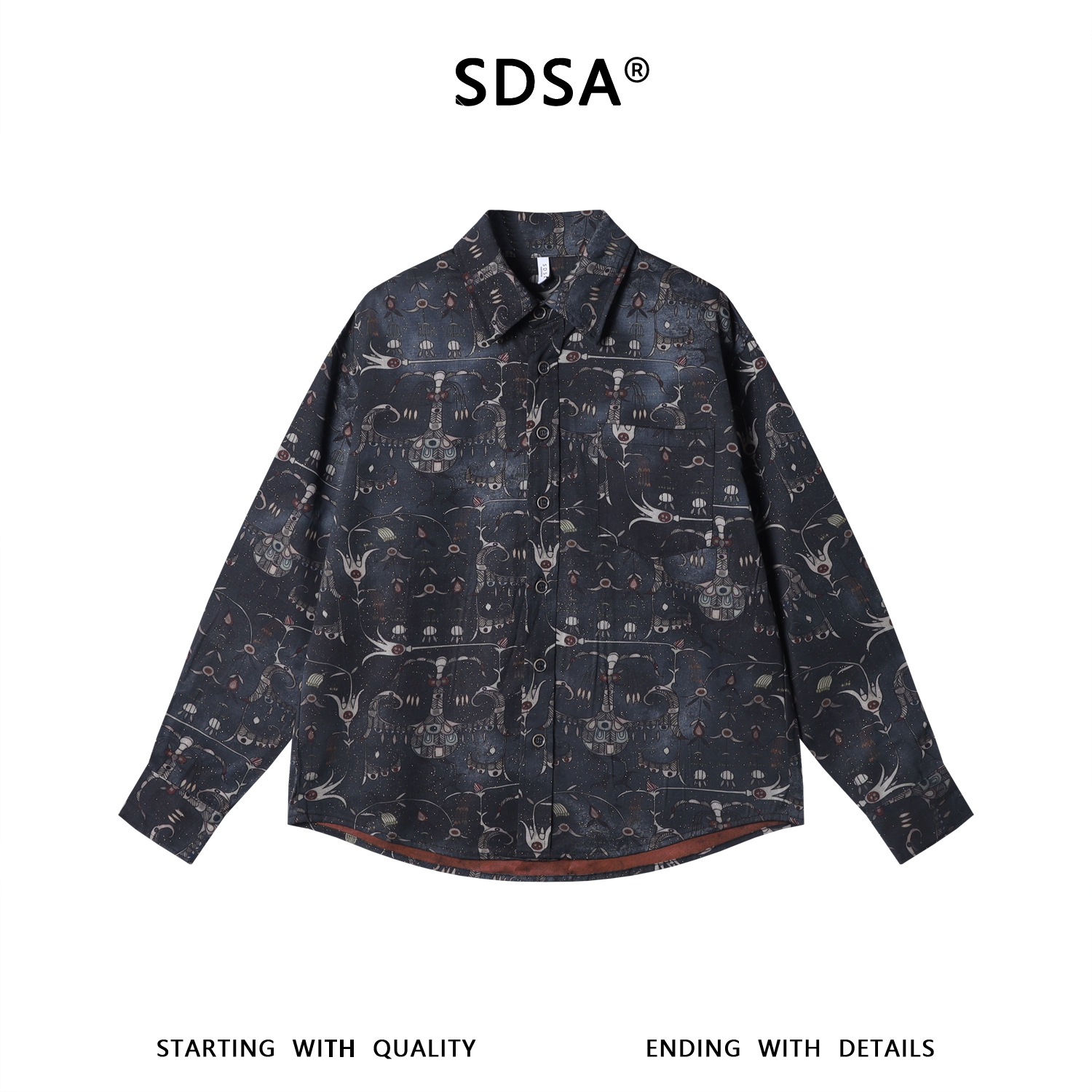 26CS68SDSA男装2026新款高贵轻奢美式复古抽象图案长袖衬衫百搭时尚衬衣