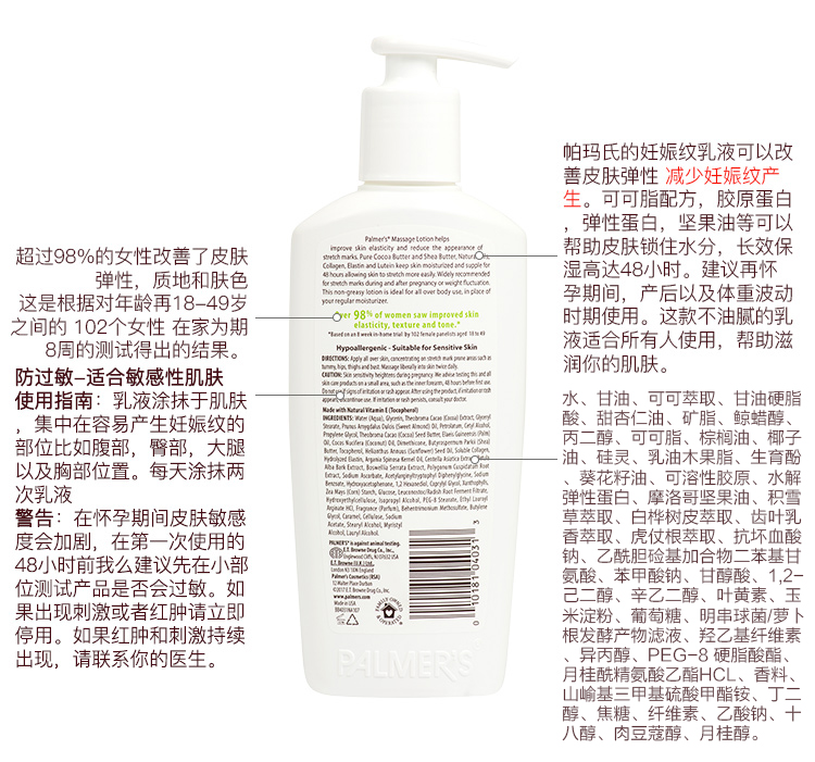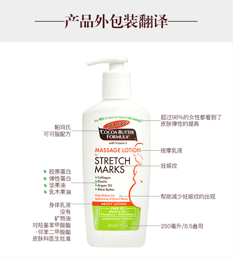【保税仓】Palmers帕玛氏可可脂 妊 \ting\ 纹按摩乳 250ml