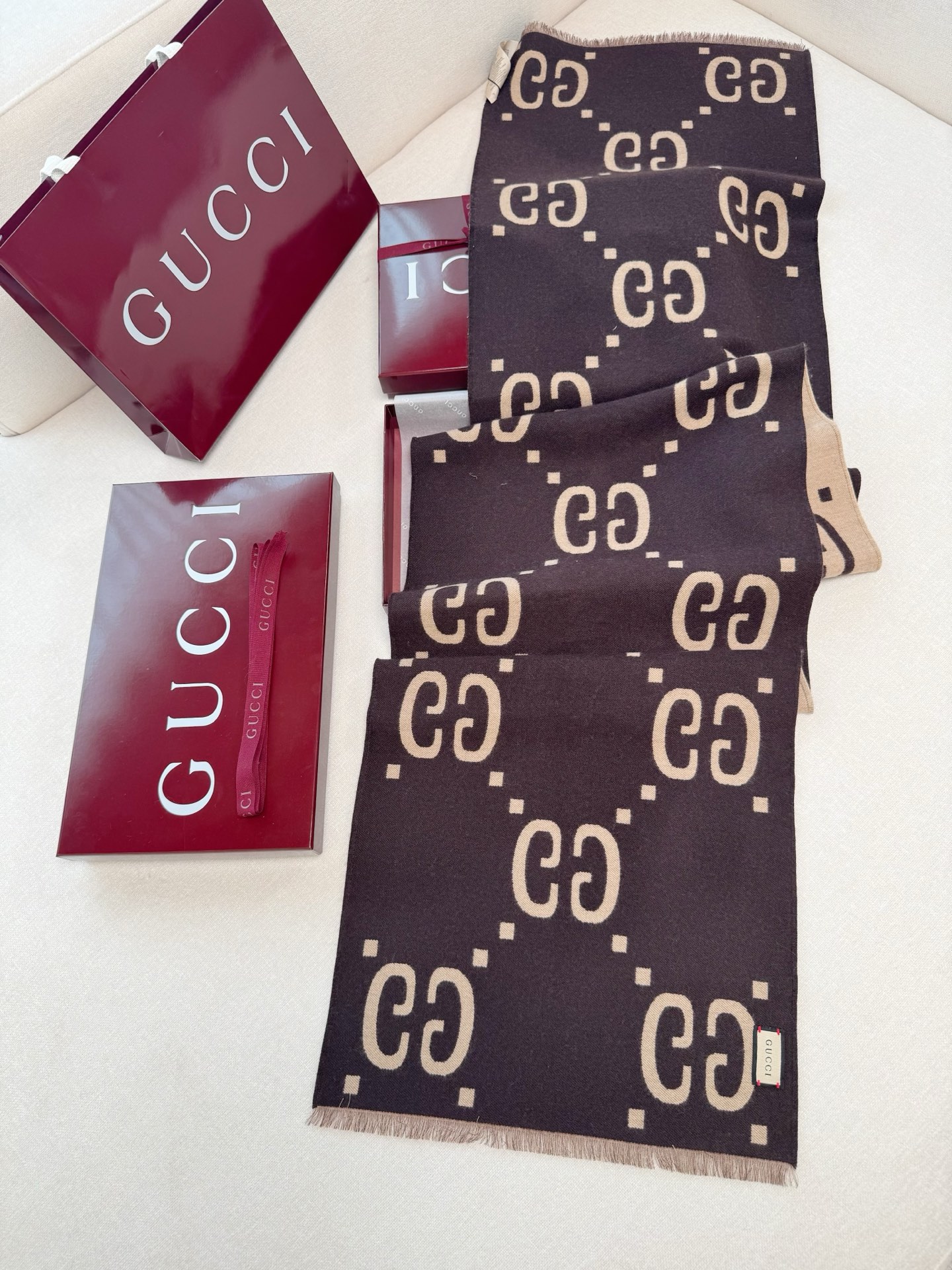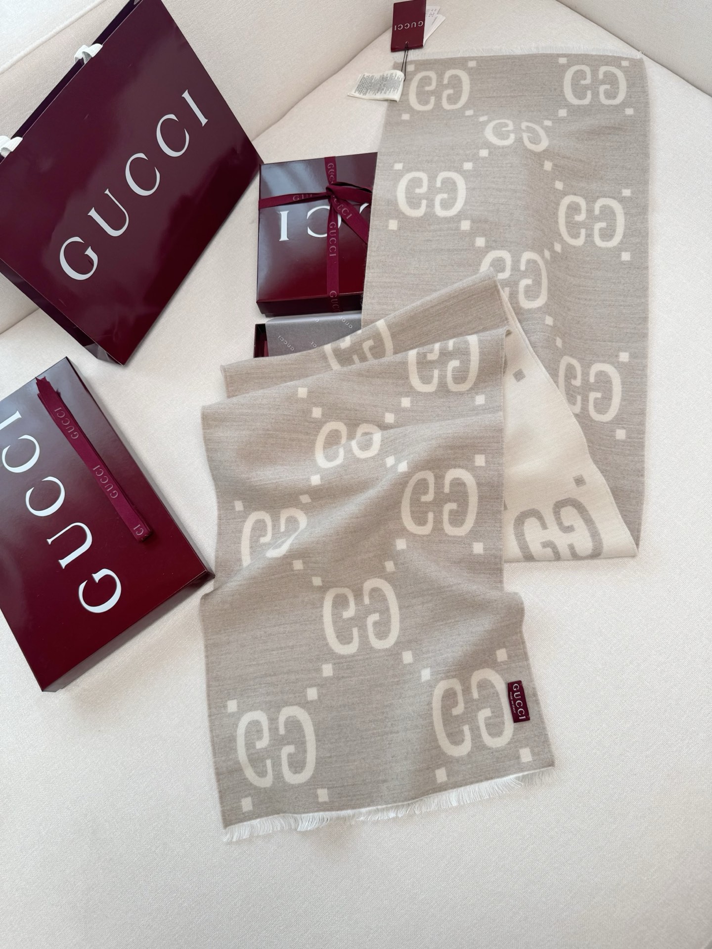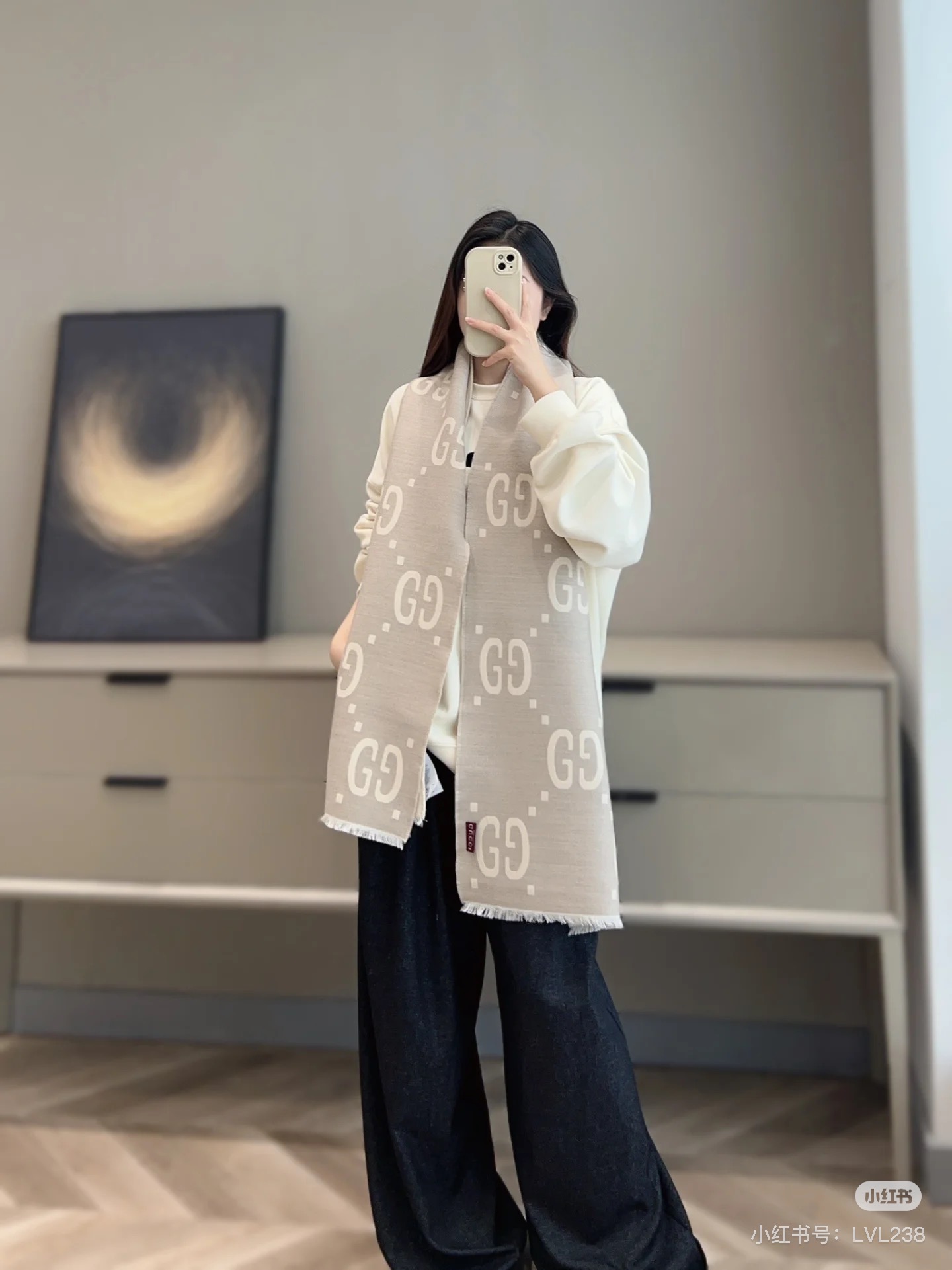 全新升级 𝐆𝐔𝐂𝐂𝐈 经典大G Size:35x190cm 91%羊毛9%真丝 大G 提花品牌标志性元素,辨识度极高,男女通戴,搭配大衣、西装或休闲外套都超显品位。双面大地色,经典色调百搭且高级,提亮造型或叠搭层次感都能轻松驾驭。最高品质,对版专柜工艺,随便对比✌️ 全套最新酒红色包装🎁