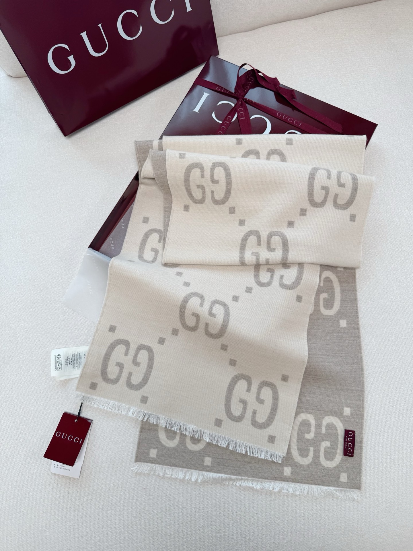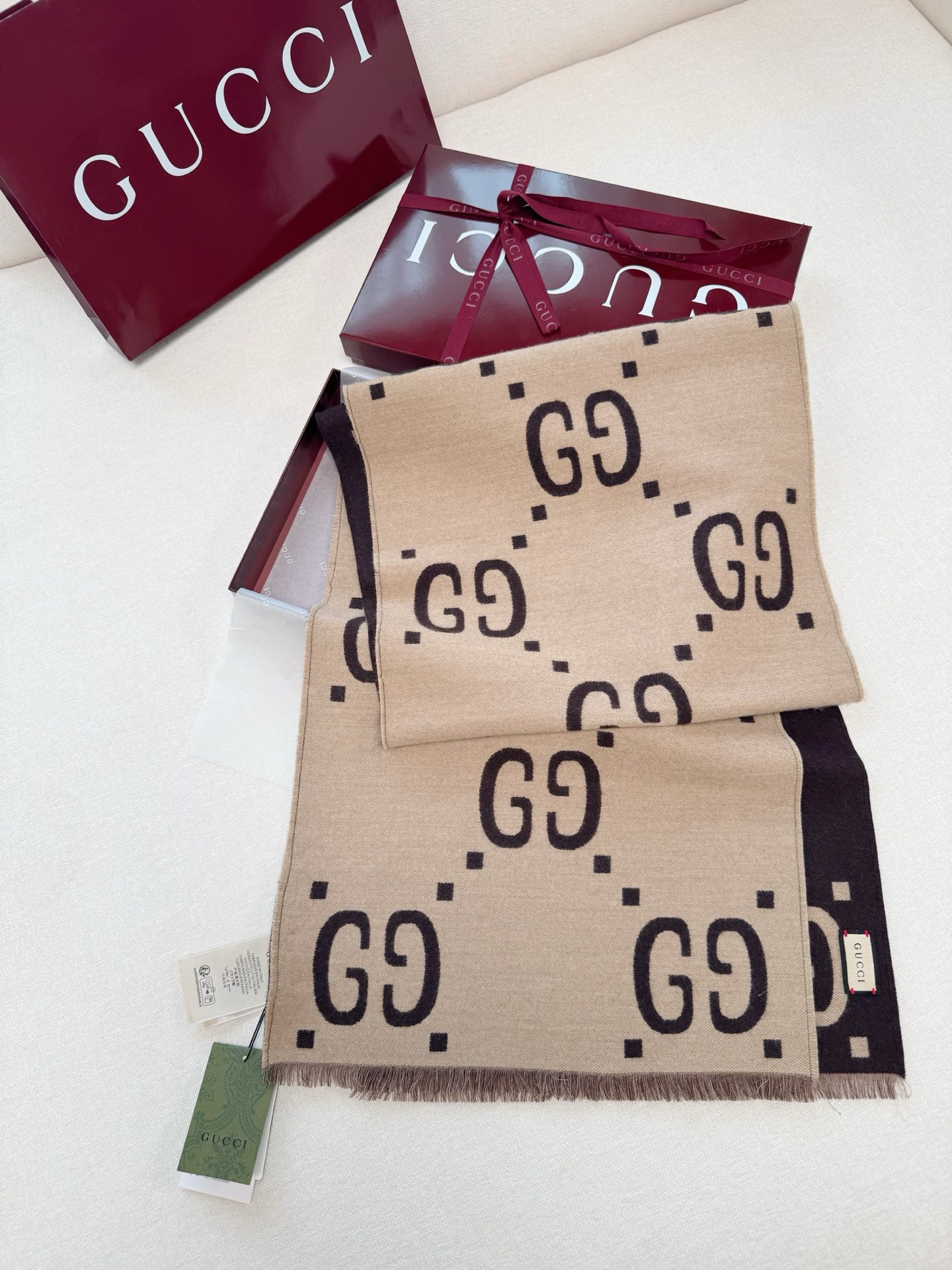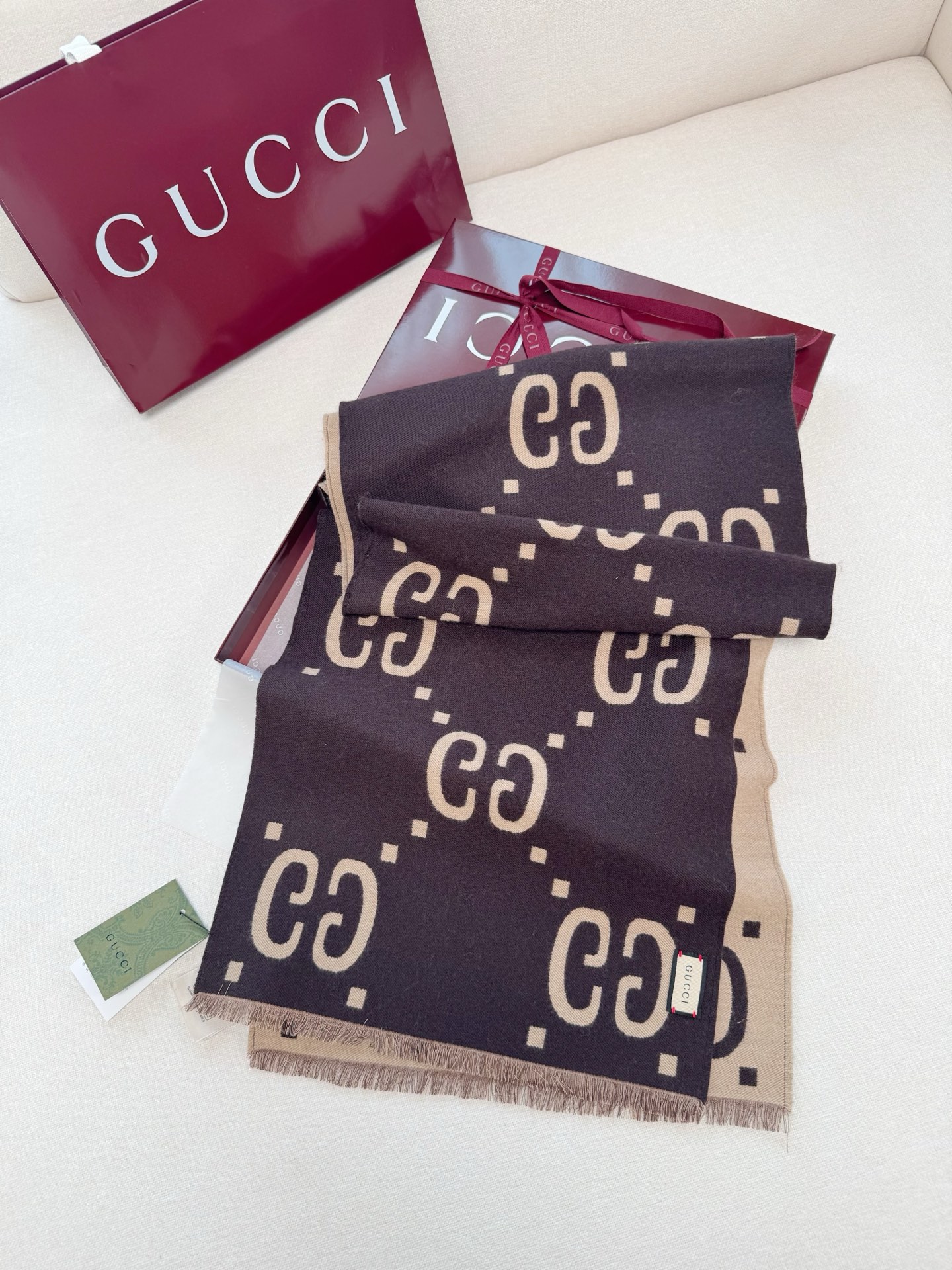 全新升级 𝐆𝐔𝐂𝐂𝐈 经典大G Size:35x190cm 91%羊毛9%真丝 大G 提花品牌标志性元素,辨识度极高,男女通戴,搭配大衣、西装或休闲外套都超显品位。双面大地色,经典色调百搭且高级,提亮造型或叠搭层次感都能轻松驾驭。最高品质,对版专柜工艺,随便对比✌️ 全套最新酒红色包装🎁