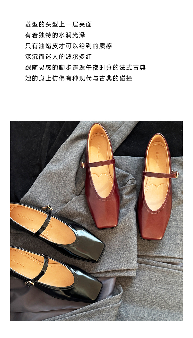 RIM RIM复古一字带玛丽不累脚法式玛丽珍软底春秋工作鞋皮鞋2460