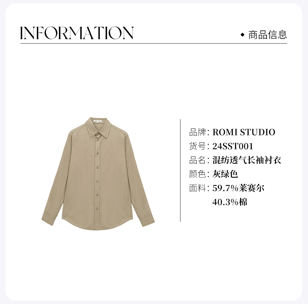 ROMI STUDIO”法式优雅“天丝+棉定织混纺透气长袖衬衣24SST001