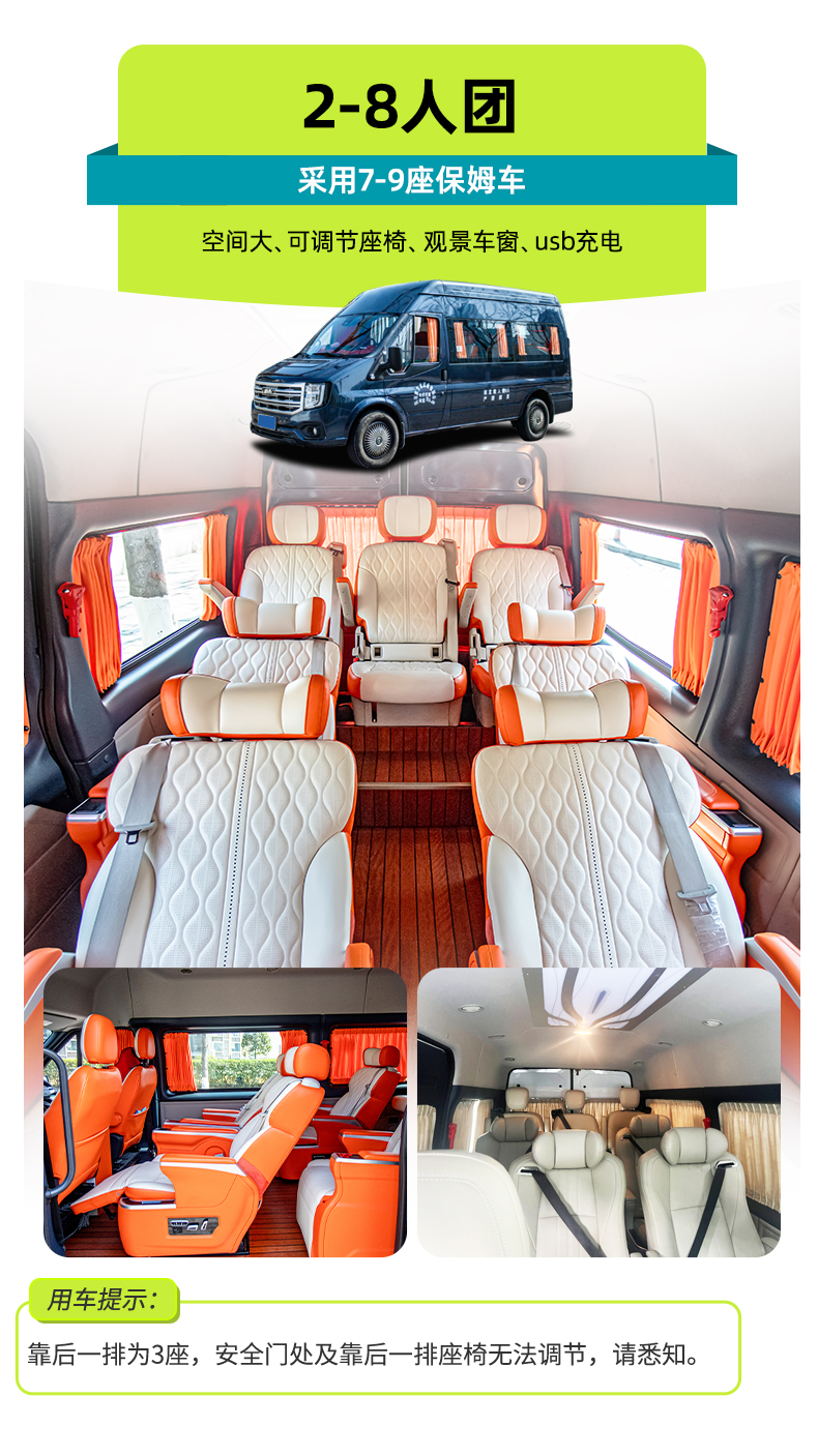 2-8人团-安排7-9座保姆车 (根据人数派车);