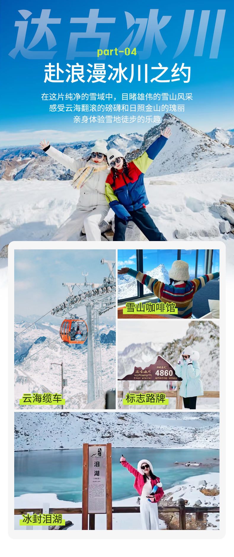 【D套餐】达古冰川景区客运索道将于12.26进行检修,检修期间达古冰川景区索道将暂停运营。索道停运期间,景区山下其他景点正常开放,可正常游览,望悉知