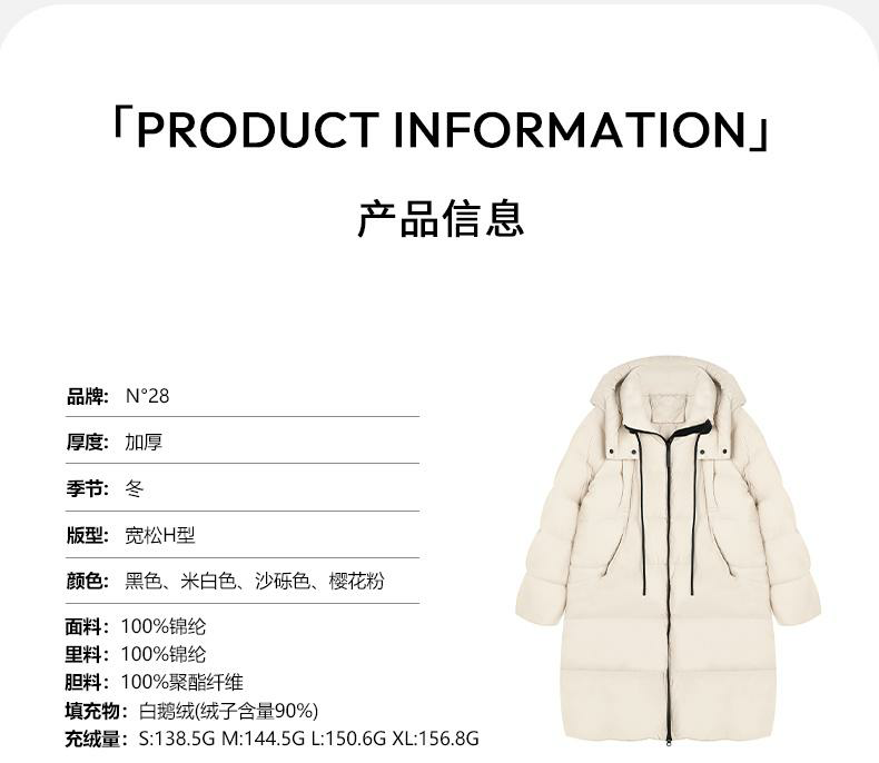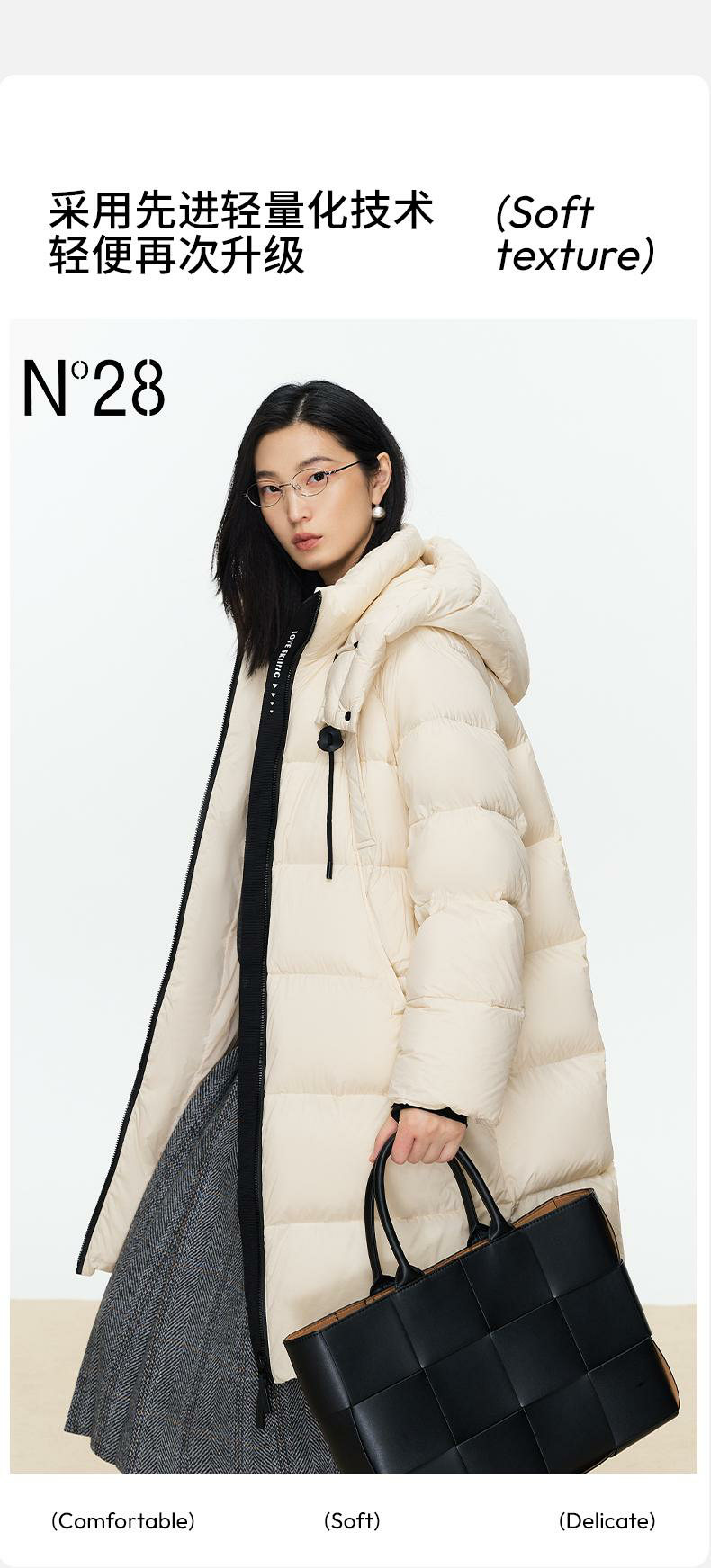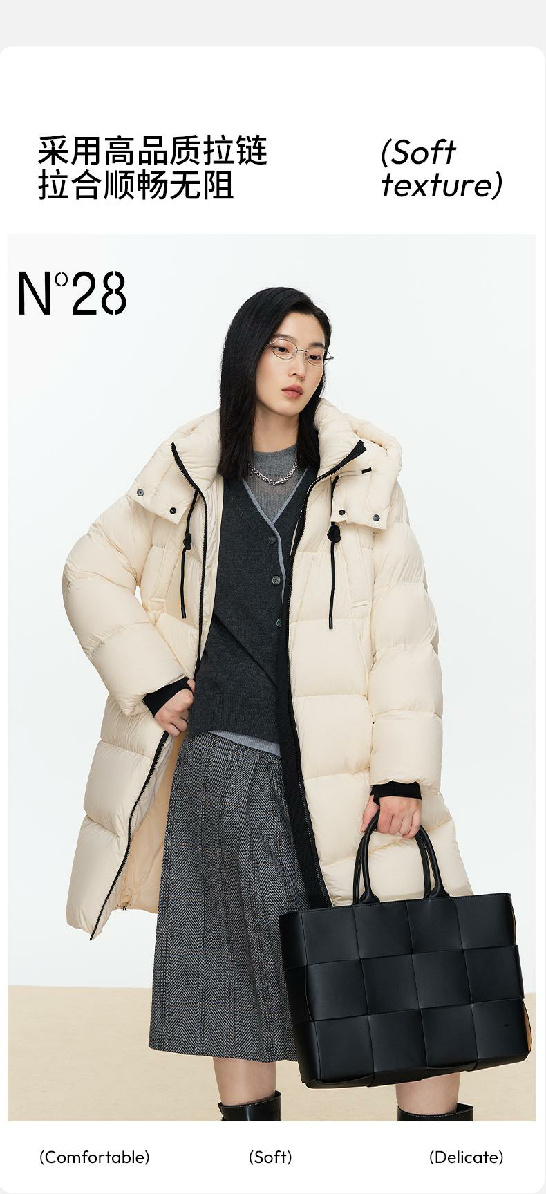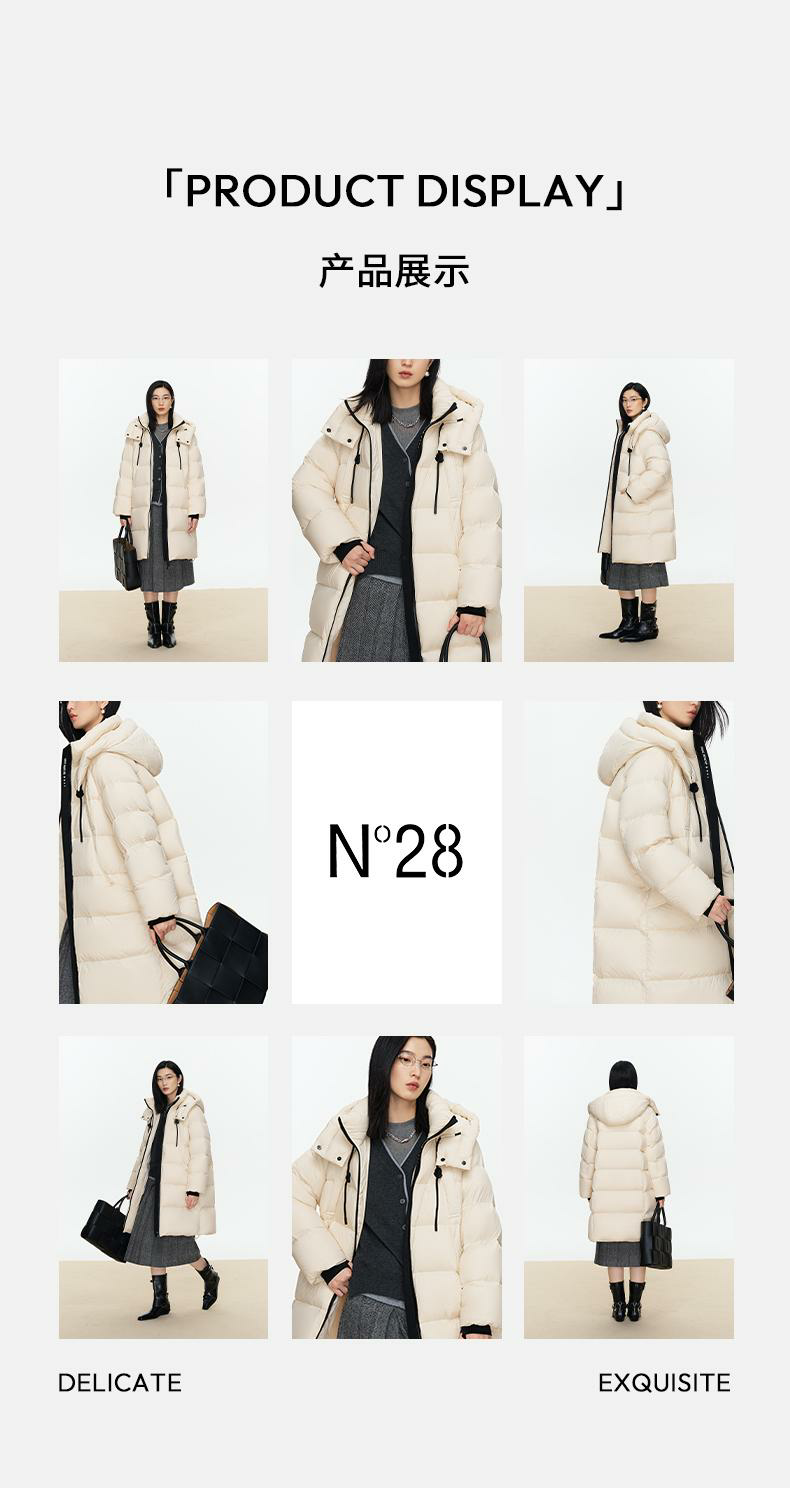 【破价】N°28【北海道】秋冬新款时尚外套保暖连帽休闲中长款鹅绒羽绒服8A51Y031