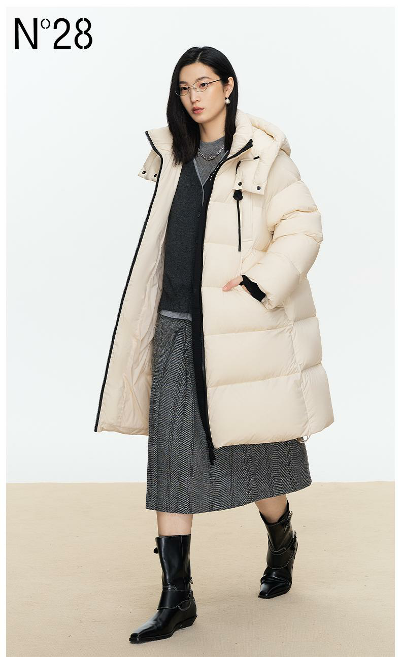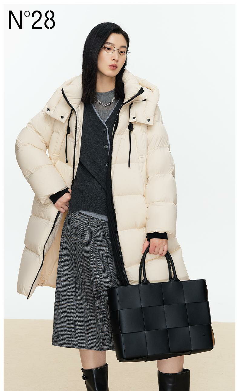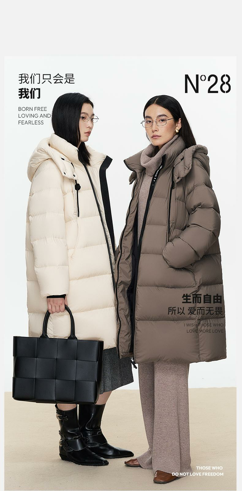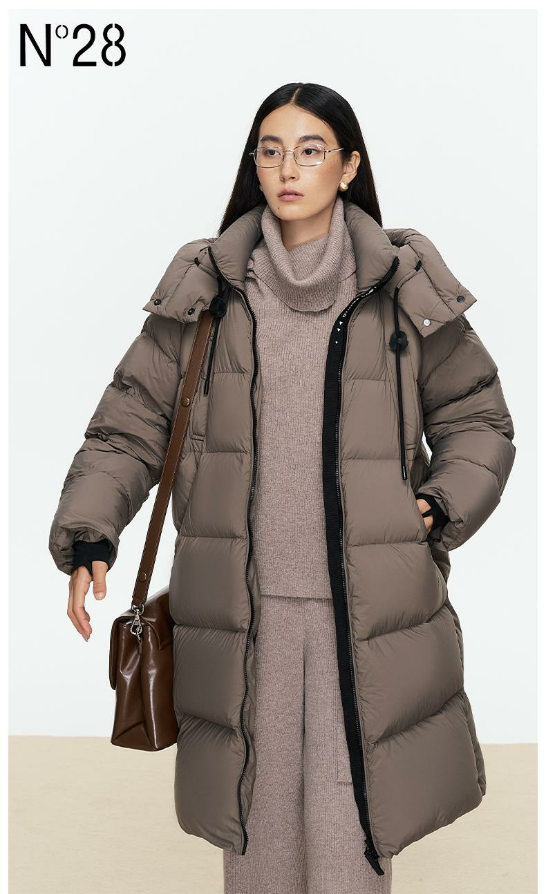 【破价】N°28【北海道】秋冬新款时尚外套保暖连帽休闲中长款鹅绒羽绒服8A51Y031