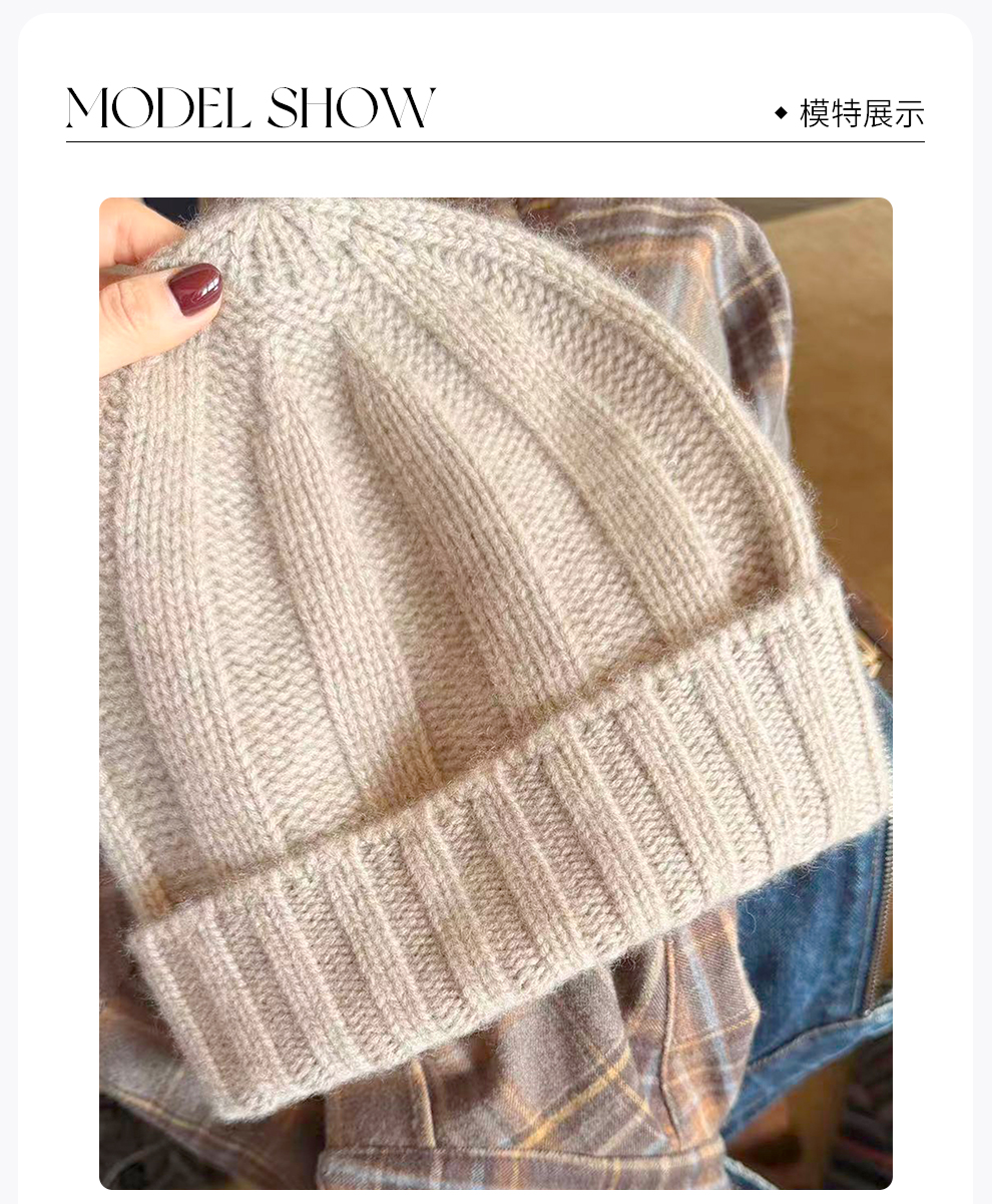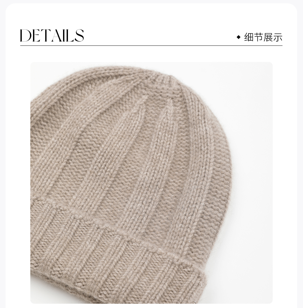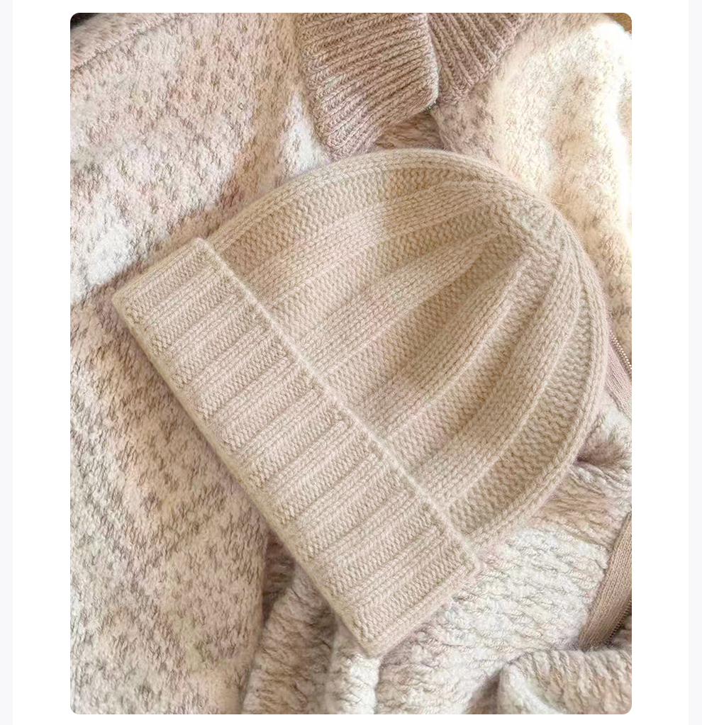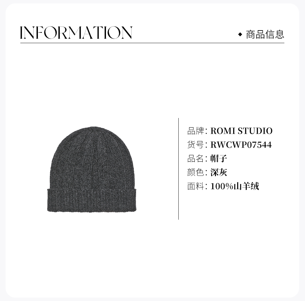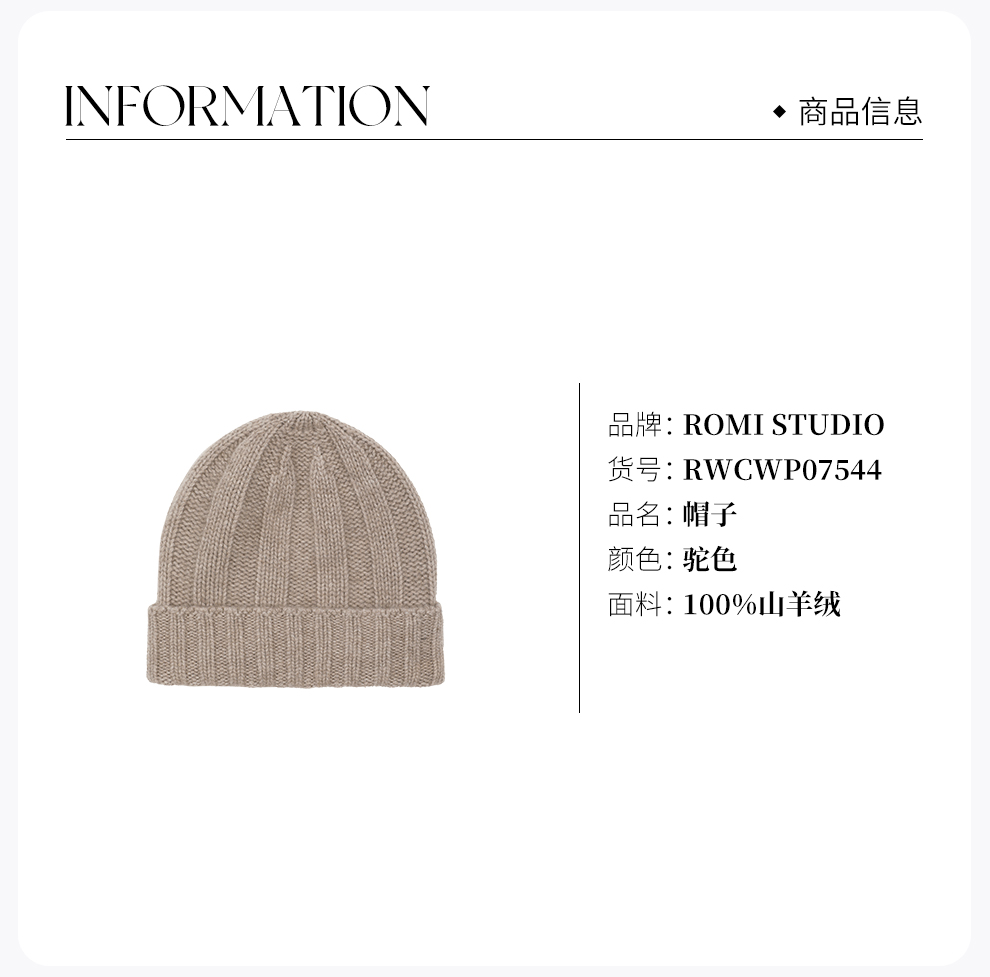 ROMI STUDIO“无缝一体”100%山羊绒加厚坑条毛织帽冷帽 RWCWP07544