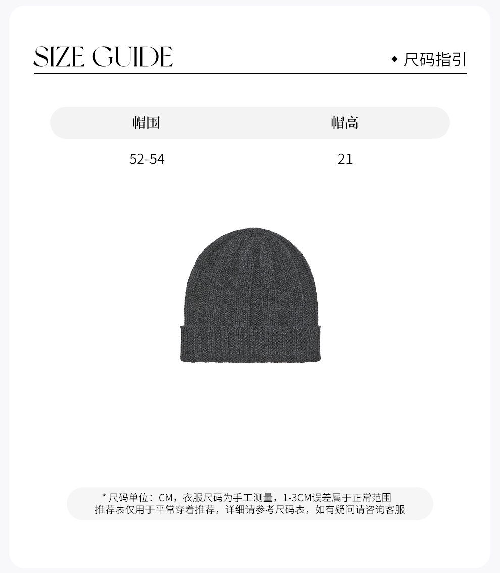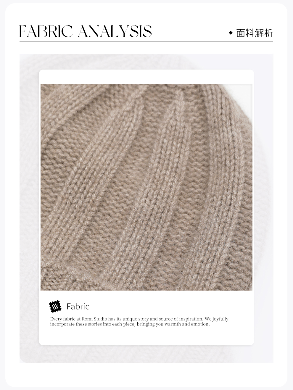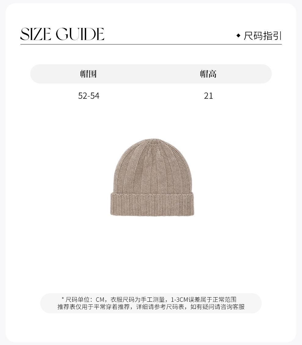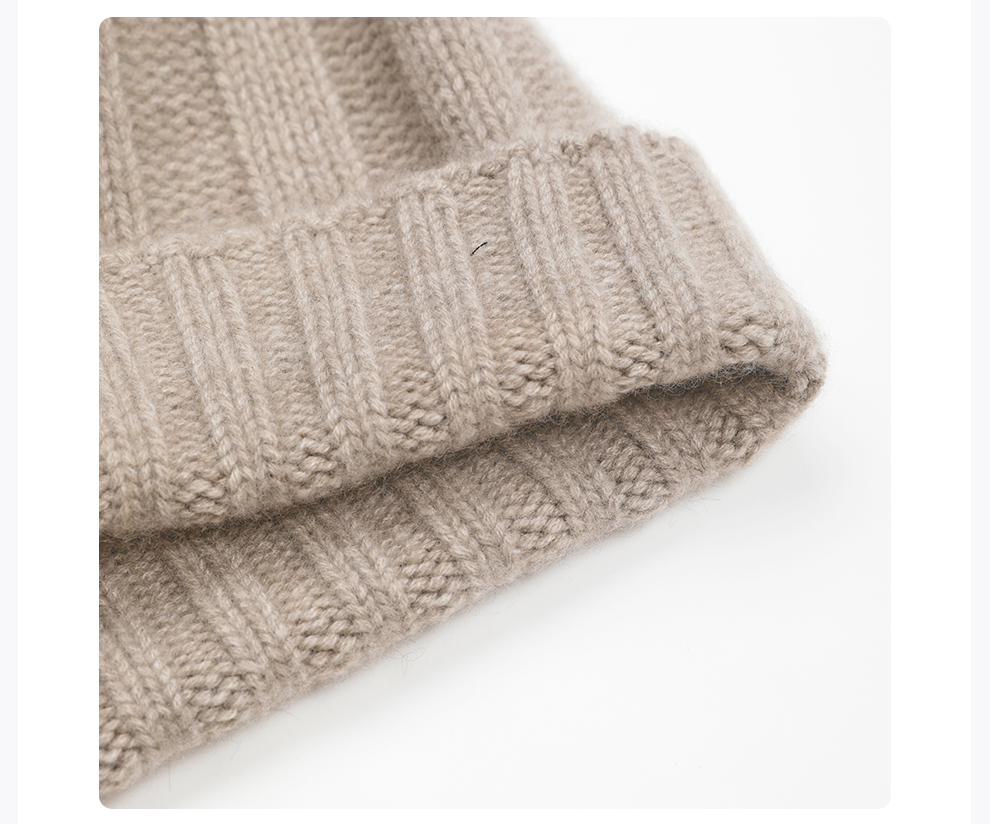 ROMI STUDIO“无缝一体”100%山羊绒加厚坑条毛织帽冷帽 RWCWP07544