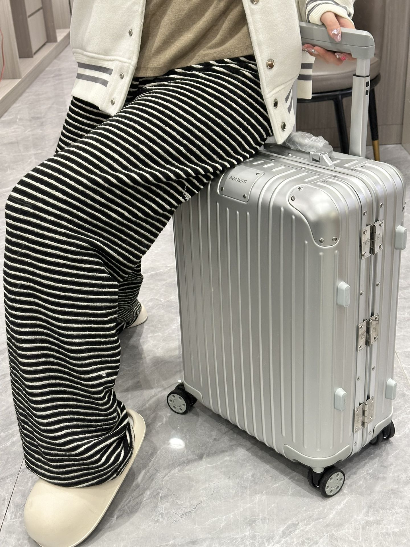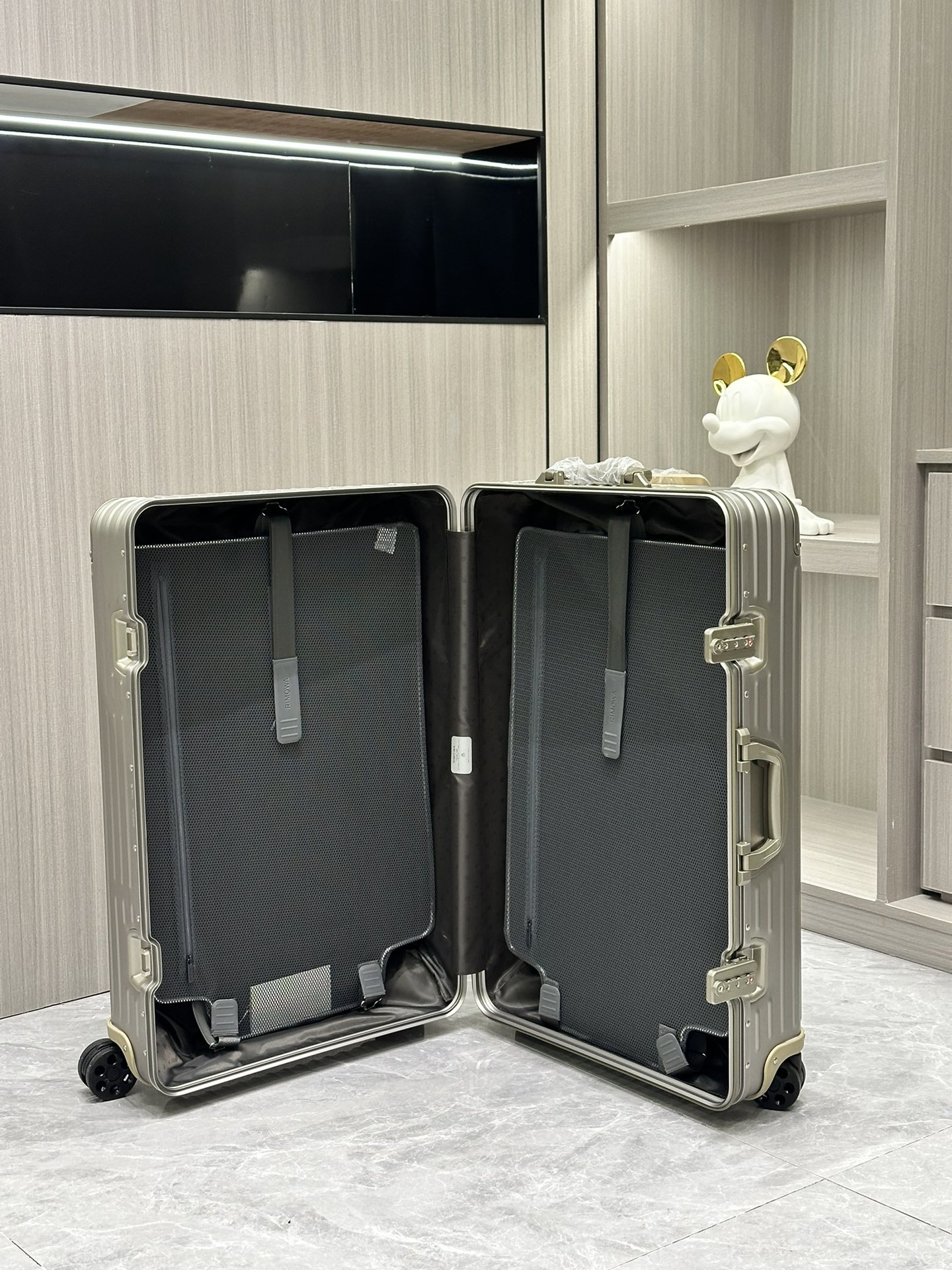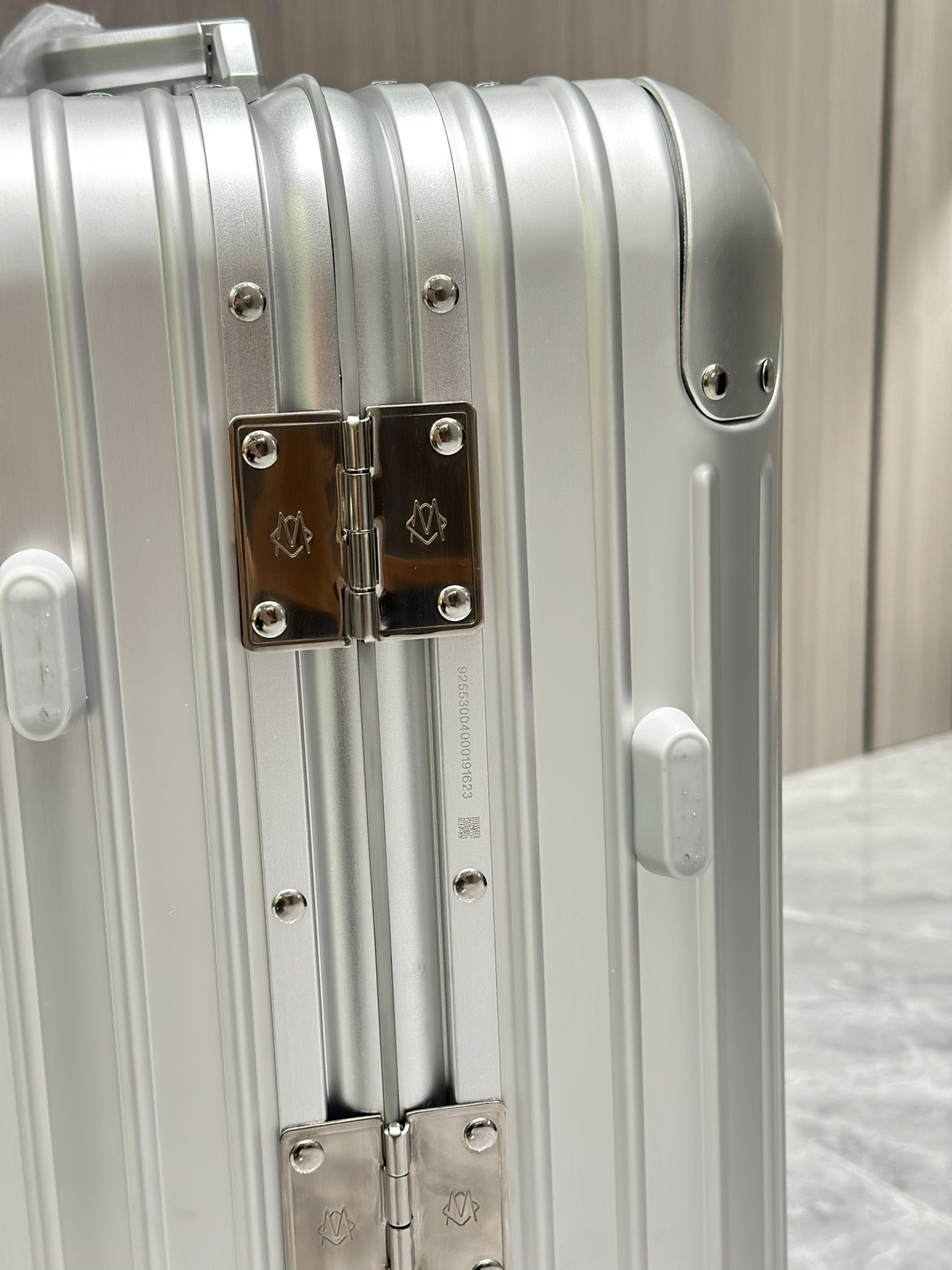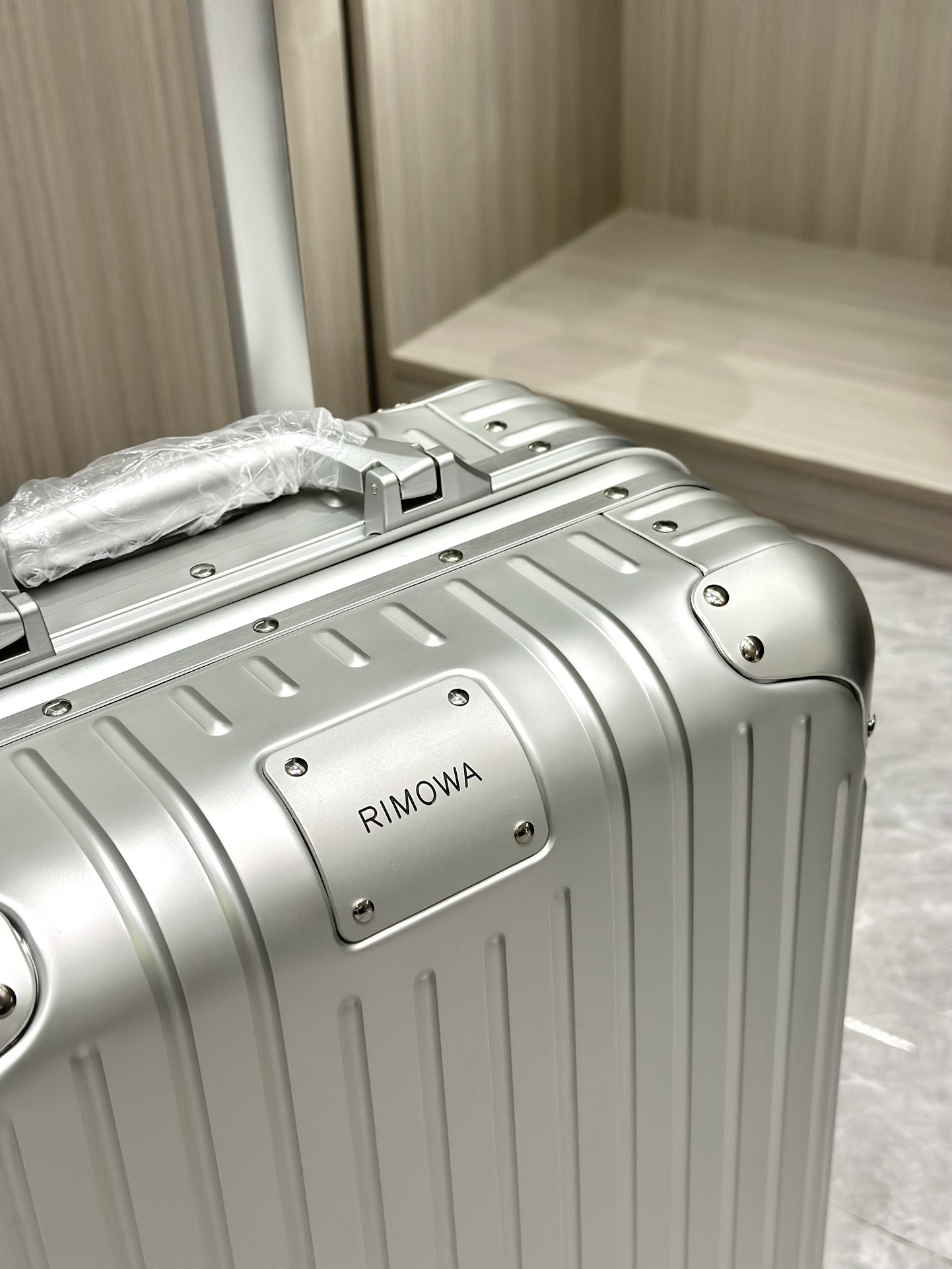RIMOWA Original全新系列行李箱 纯原标准登机箱 每一款都有自己数字型号! 碰撞金属质感✨ 彰显极简现代风范 而且大半个娱乐圈全都在使用,他的影响力可算是吵架大。除了良好的性能之外,在这就是行李箱颜值方面,它绝对算得上 排名前三的 佼佼者! 质感带来的美是色彩比不了的 永远的铝镁合金 经典的就是耐得住时间的 个性鲜明的铝镁合金制 RIMOWA Original 持有标志性的行李箱设计,由高端阳极氧化铝制作的,有多么好用 我相信大家的眼光是雪亮的,这么多人都选择它,肯定是经过了大众使用过后在,推荐给大家,旅游旺季已经来临,正巧需要换行李箱的,看过来,绝对让你实现了前所未有的坚硬与轻巧,成为工艺与创新的上佳典范。 ORIGINAL系列,个性鲜明的铝镁合金制,拥有标志性的行李箱设计,确保经久耐用的同时,实现既坚硬又轻巧,成为工艺与创新的经典之作。随着政府对旅游业的扶持,最近出游的人增多,行李箱的订单也比以前多很多,如果您正在考虑购买,那么这一款就推荐给您。 一共三个颜色:银色、黑色、钛金、 尺寸:20、26、30 ✅20寸长宽高38.22.55 ✅26寸长宽高43.27.67 ✅30寸长宽高 50.28.78(6.7kg)