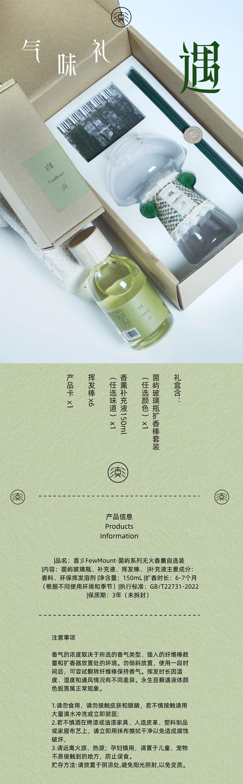喜彡FewMount 香薰礼盒/菌屿系列无火扩香香薰自选装/高级感送礼