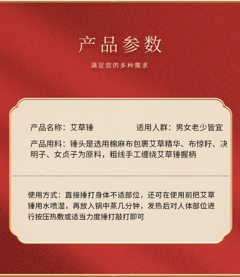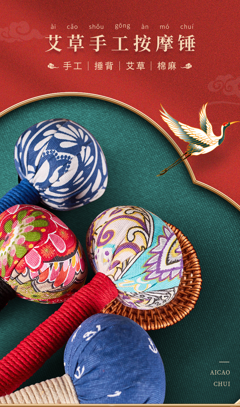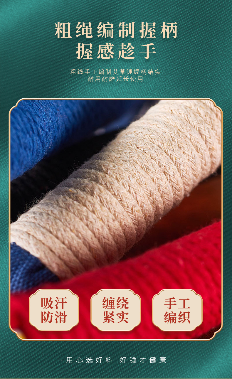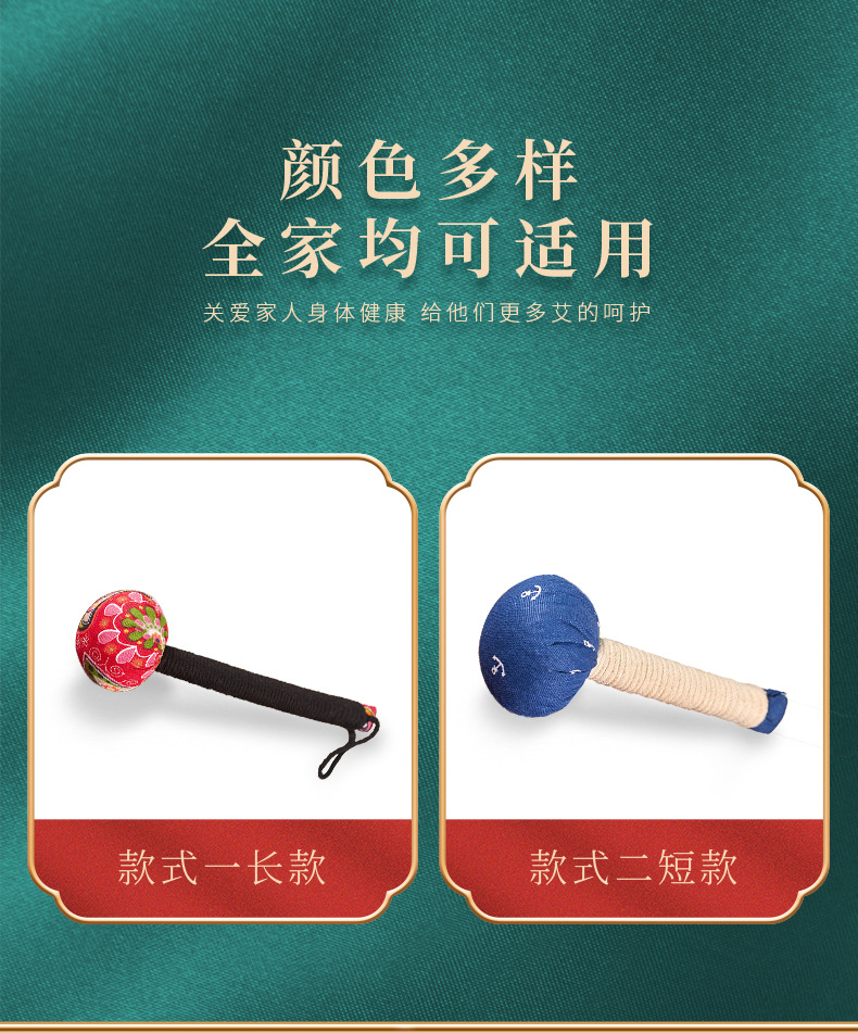 「艾草锤按摩」经络敲背锤艾灸棒决明子五子锤手居家日用可刺绣弹力养生锤