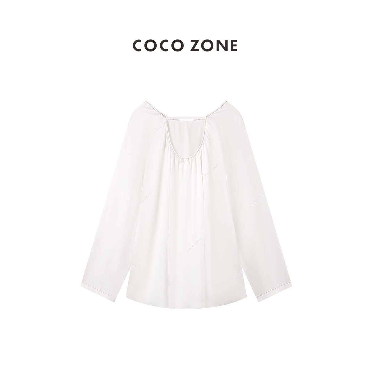 COCO ZONE 夏新款纯色长袖圆领桑蚕丝衬衣上衣 23C18326