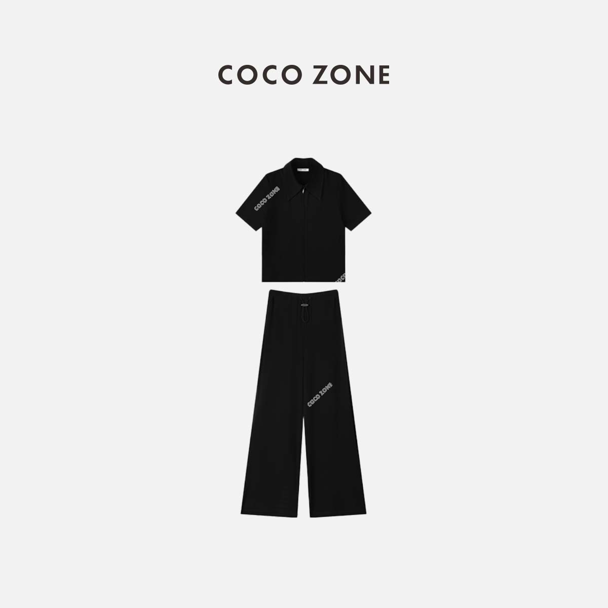 COCO ZONE 新款拉链polo翻领短袖T恤上衣+休闲裤 23C18380+23C18375