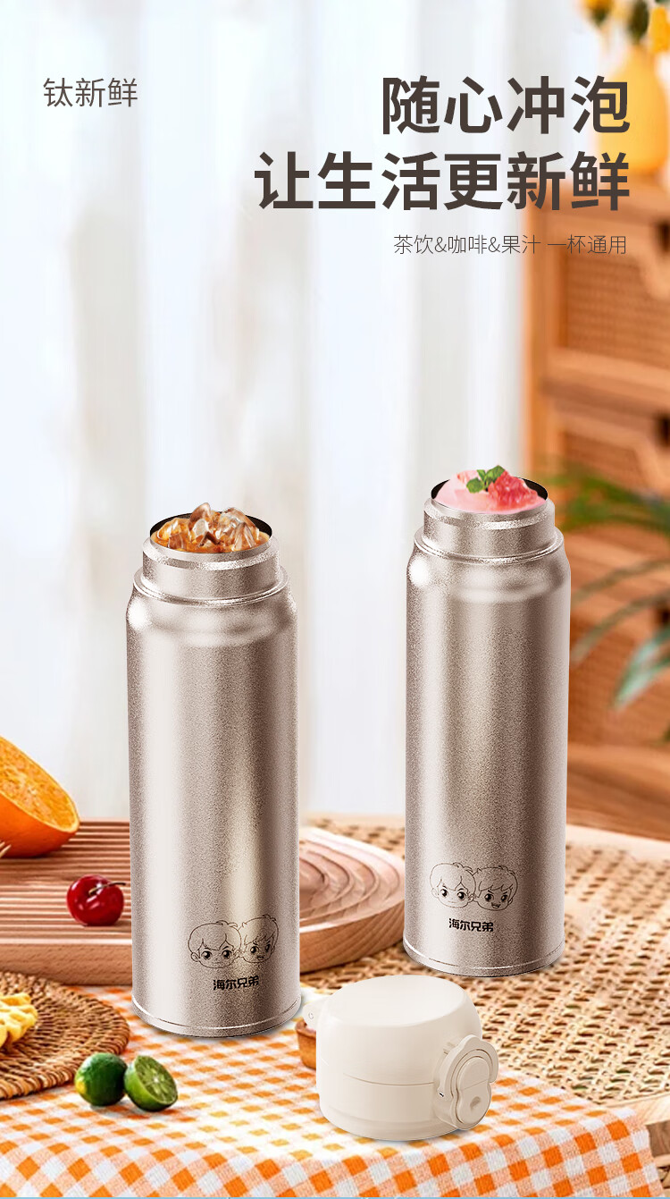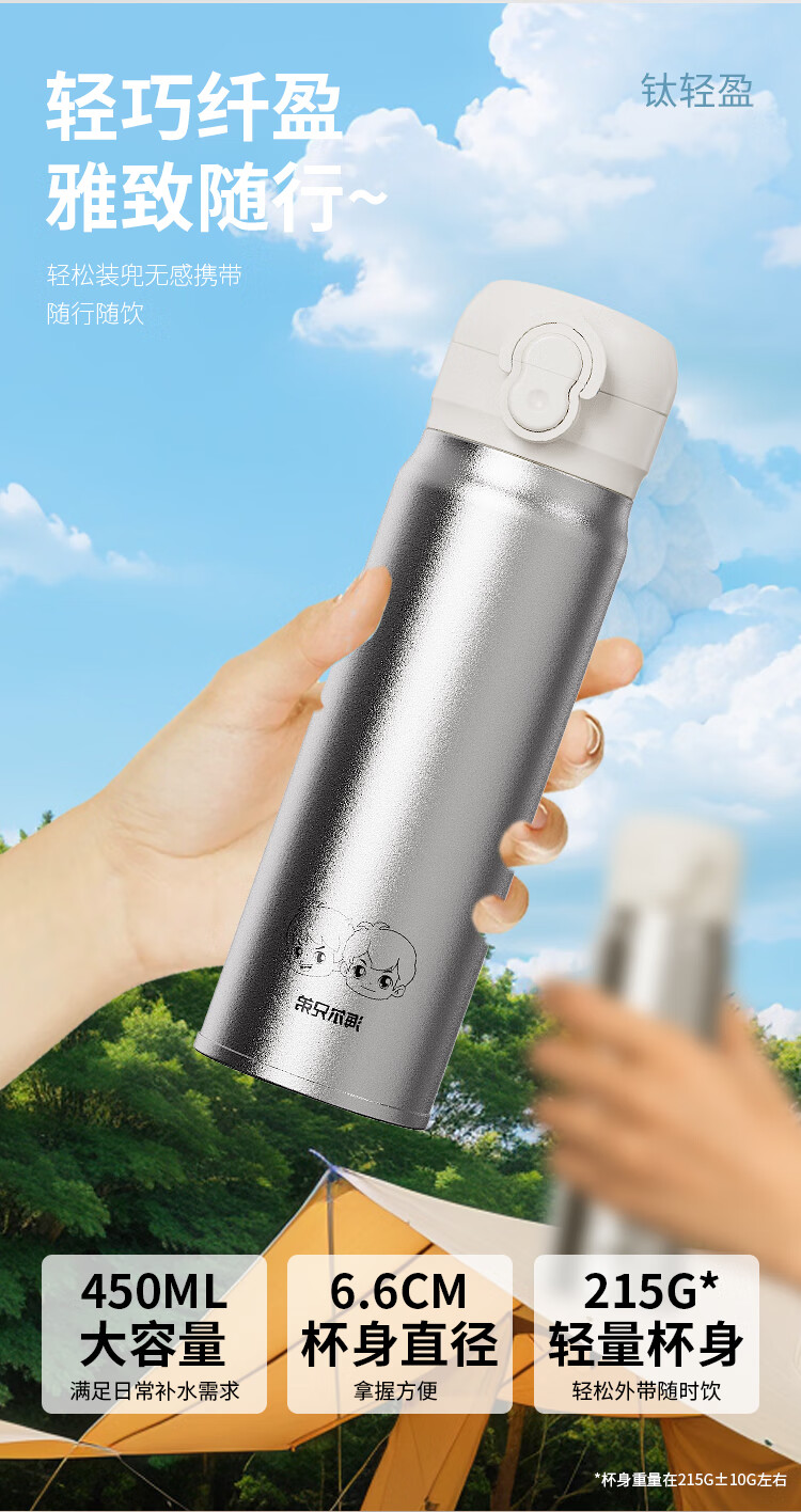 海尔兄弟 纯钛双饮保温杯HBBZ-J01D45L