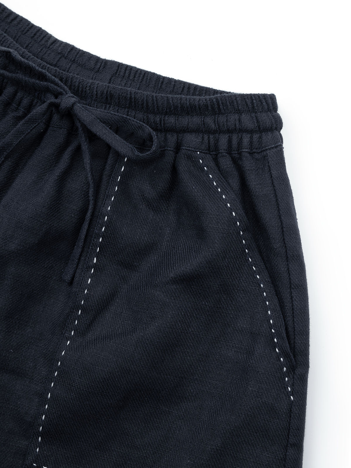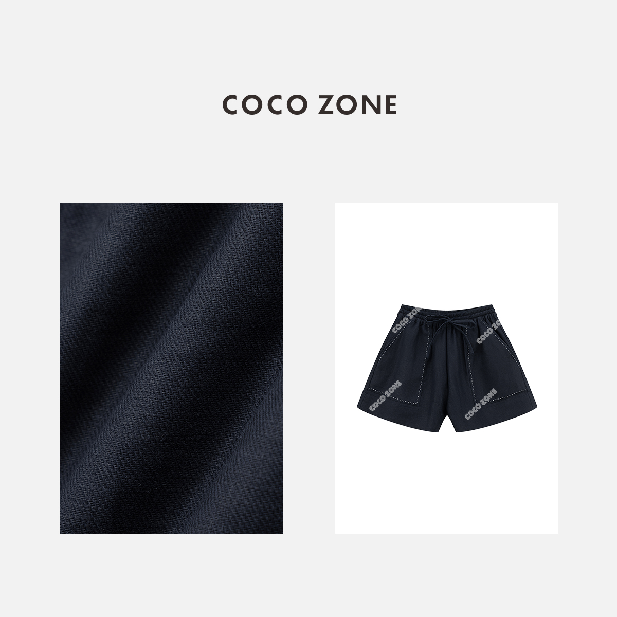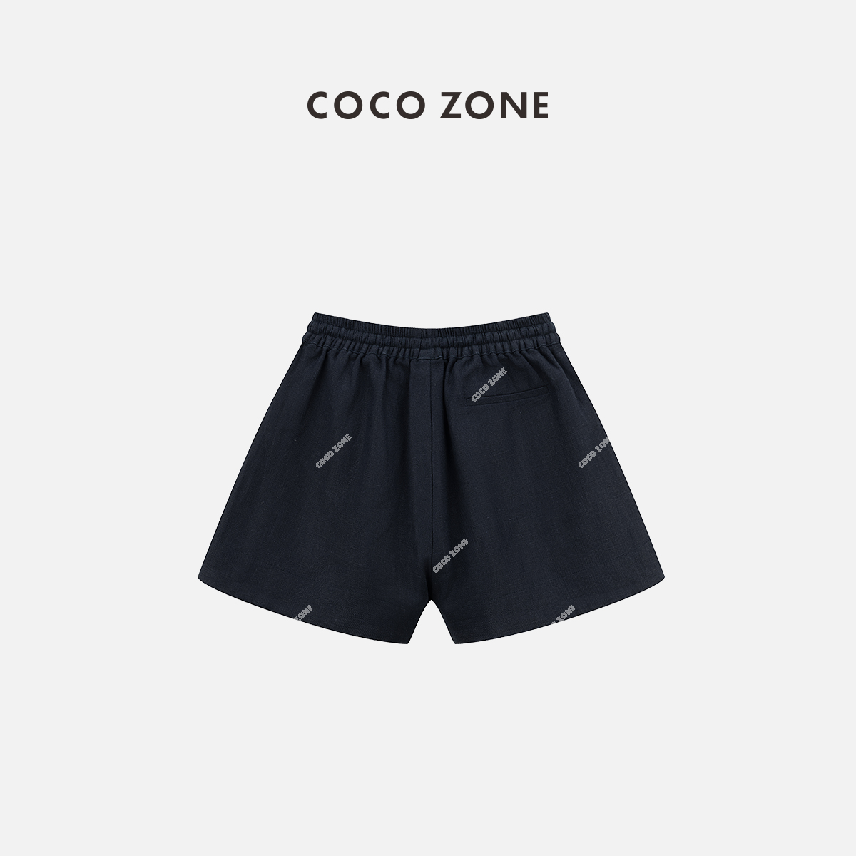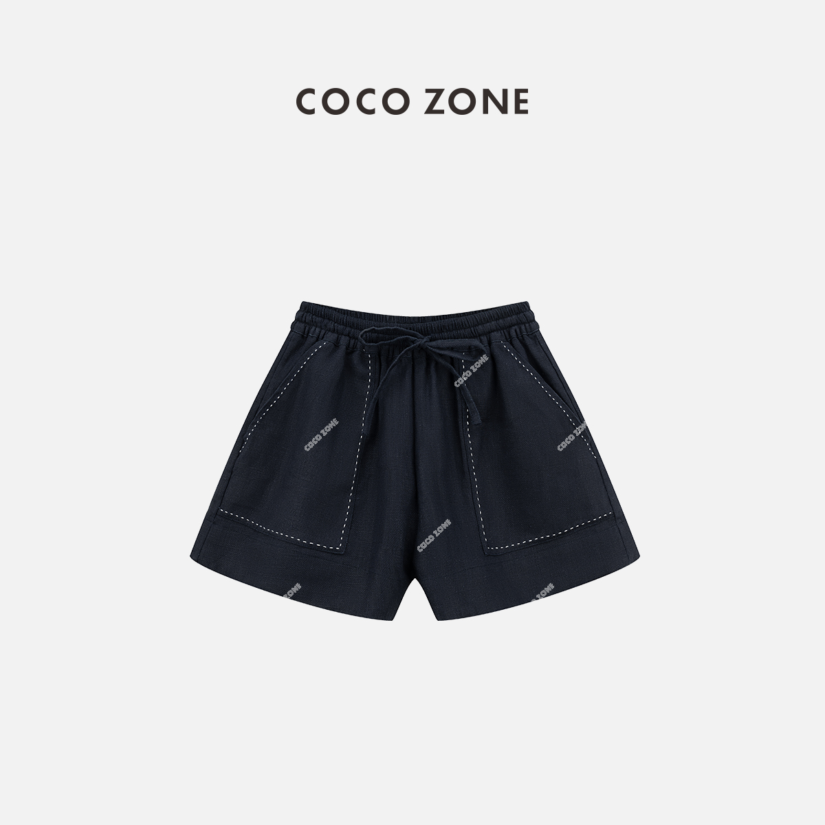 COCO ZONE 2024"明线麻料"高级感松紧腰休闲短裤口袋明线设计裤子CC2B0583