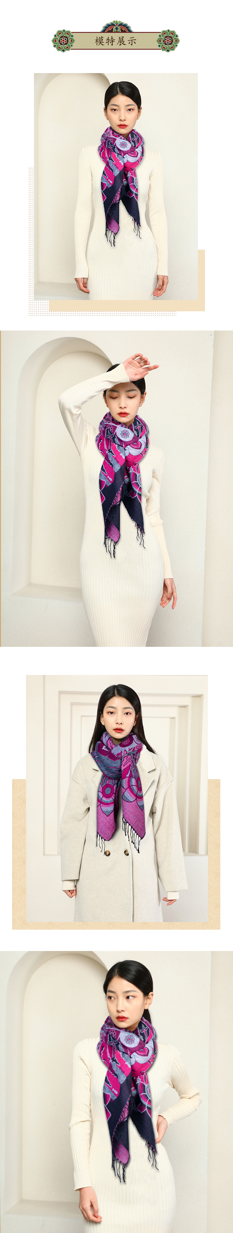 敦煌故事披肩女秋冬新款2024围巾保暖复古防寒仿羊绒针织百搭加厚