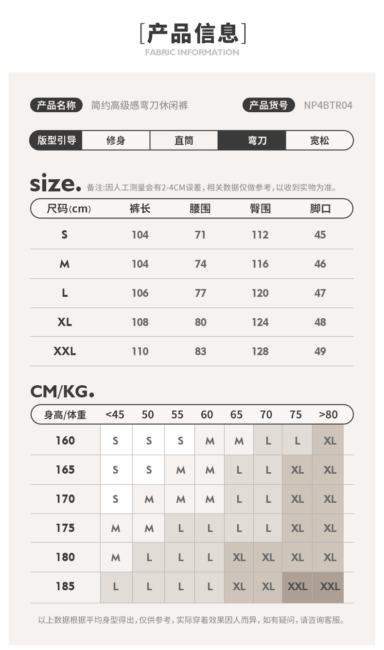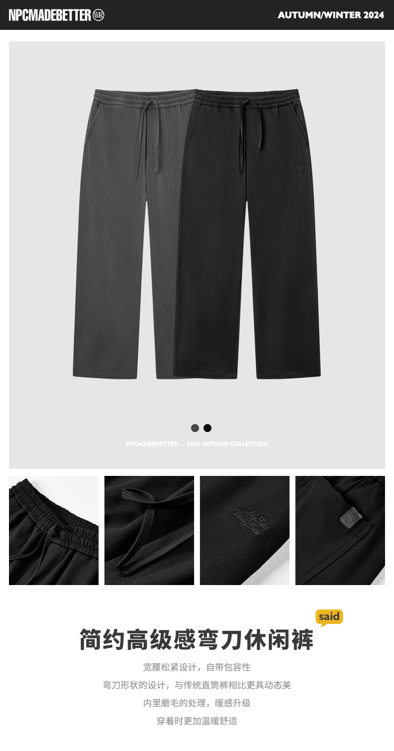 NPC潮牌字母logo刺绣复古弯刀休闲裤男垂坠阔腿裤简约NP4BTR04