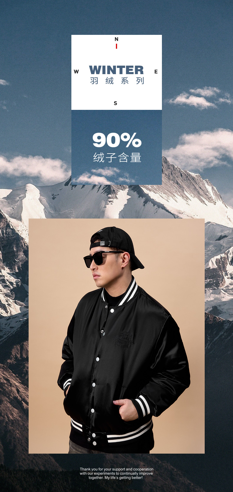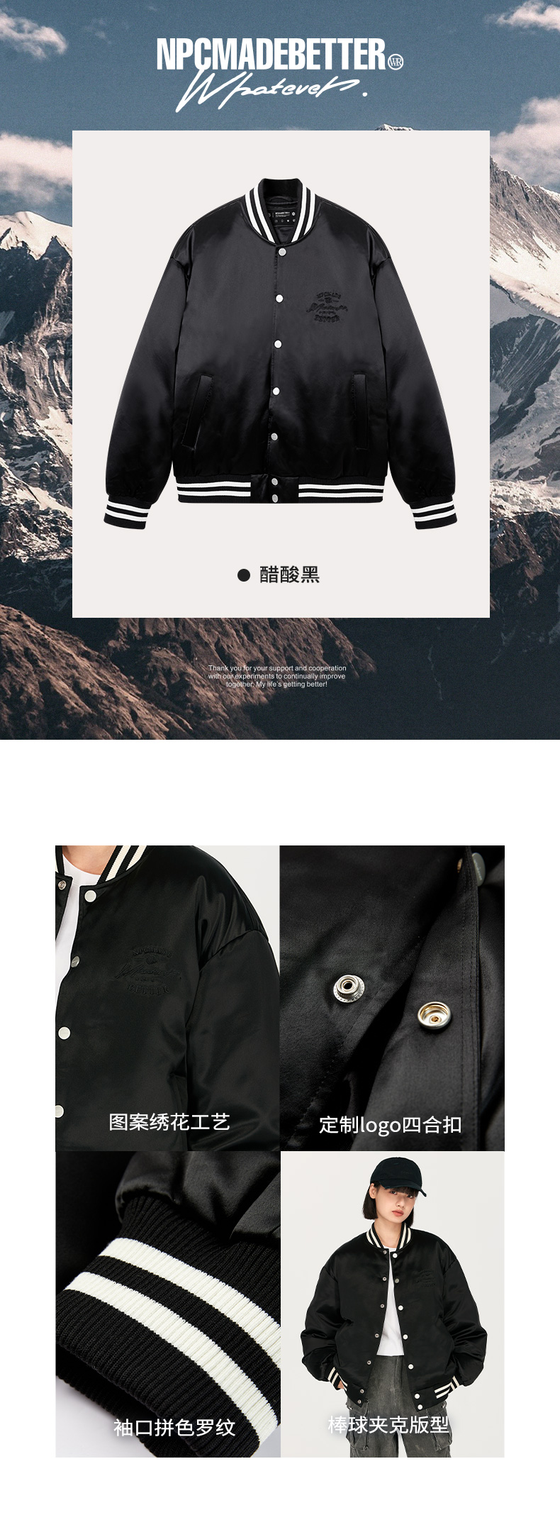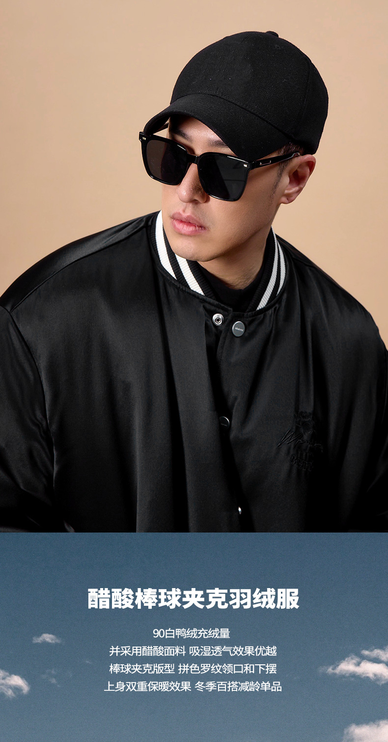 NPC潮牌醋酸90白鸭绒字母刺绣棒球服羽绒服男夹克立领新NP48DJ20