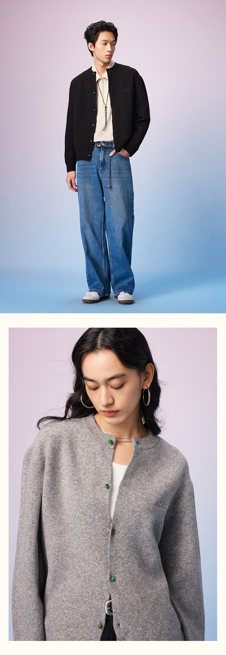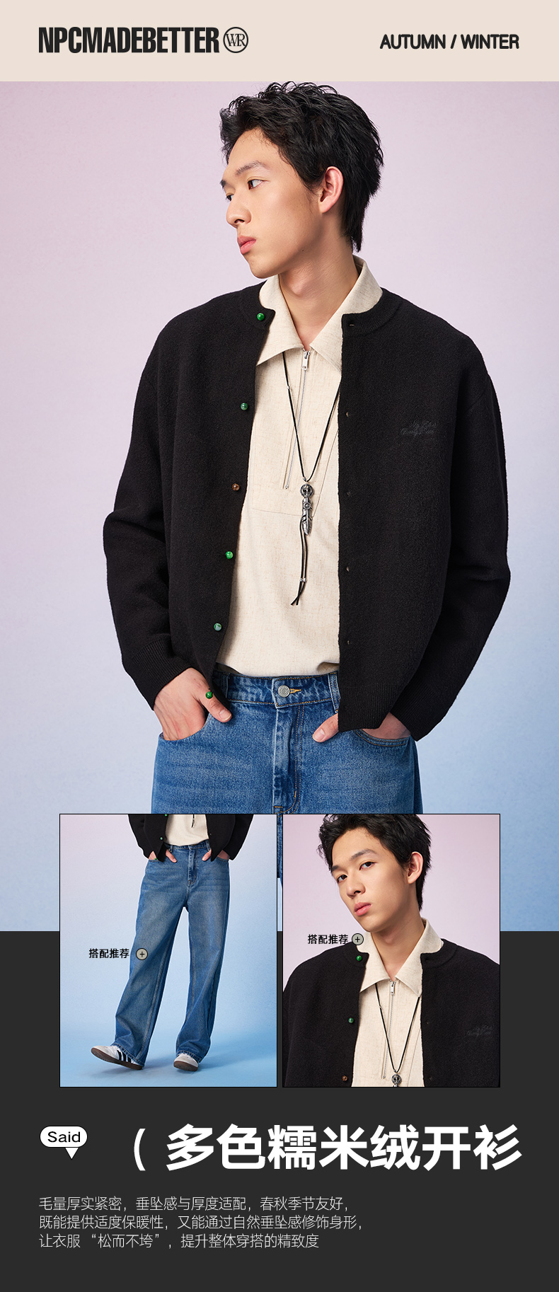 NPC潮牌复古彩色仿【玉石】纽扣针织开衫【糯米绒】男秋季新NP57SW33