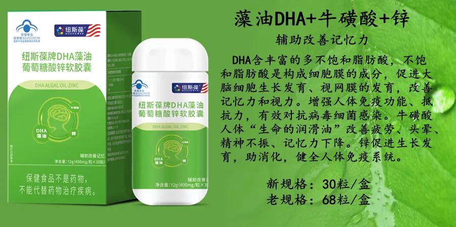 纽斯葆牌DHA藻油葡萄糖酸锌软胶囊12g(400mg/粒*30粒)