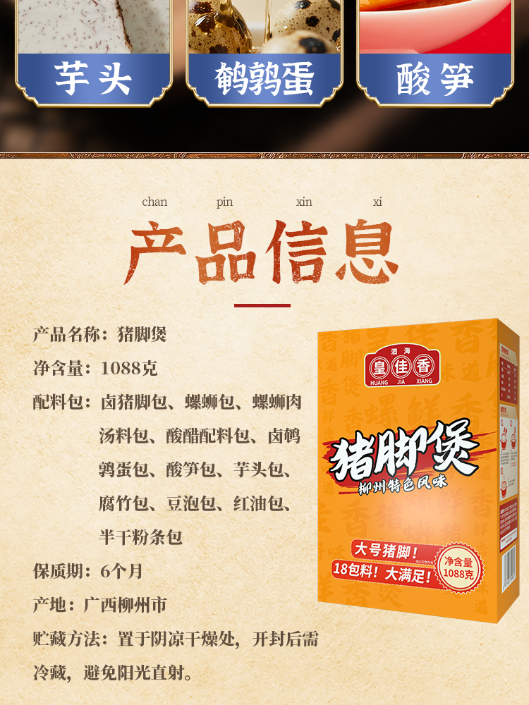 【皇佳香-青云好食城】柳州特色猪脚煲1068g/盒 大块带筋 秘制卤香