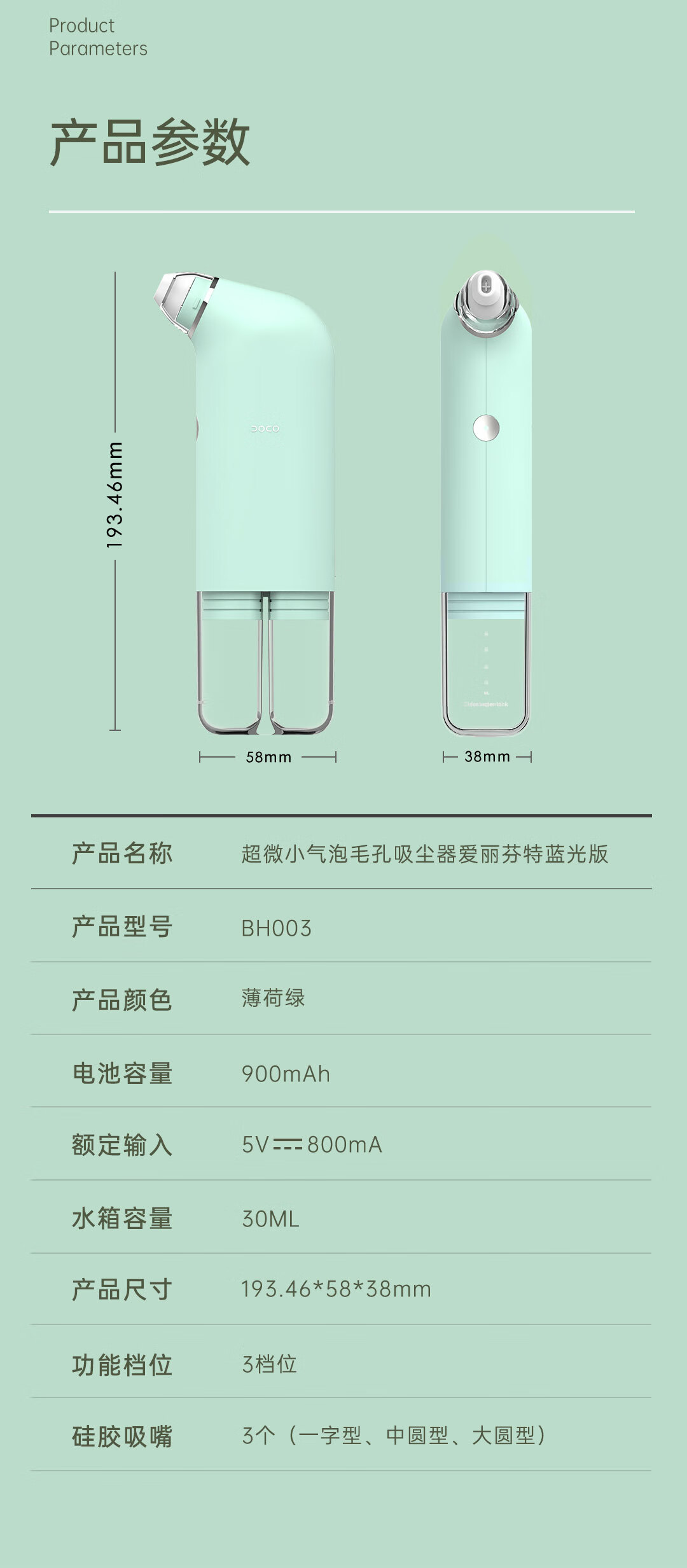 DOCO 超微小气泡毛孔吸尘器蓝光版-冰川蓝BH003