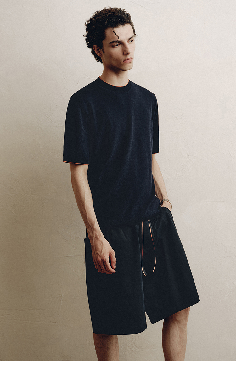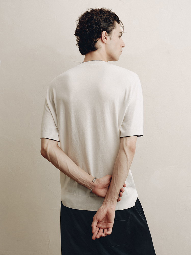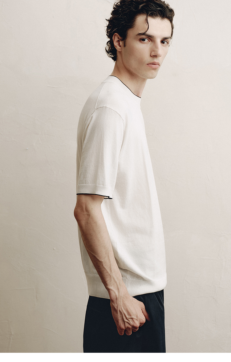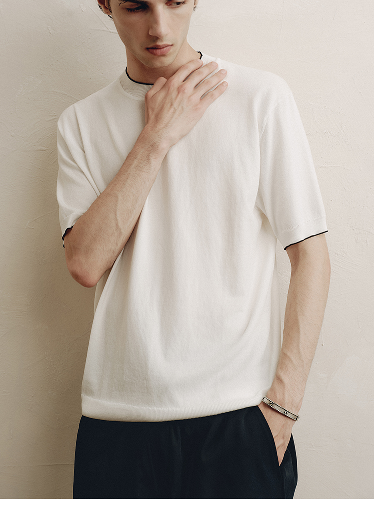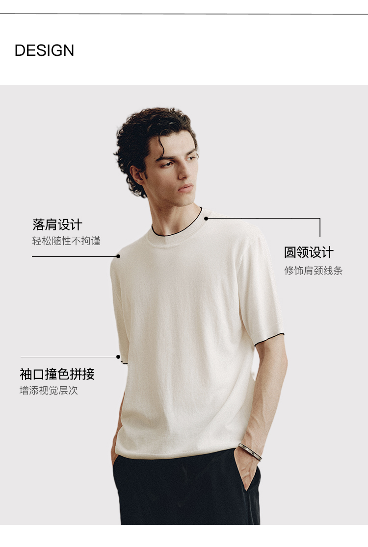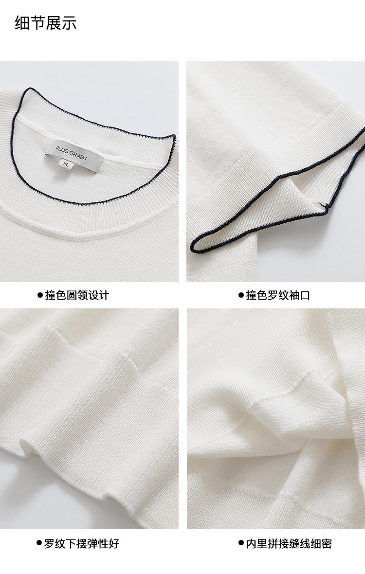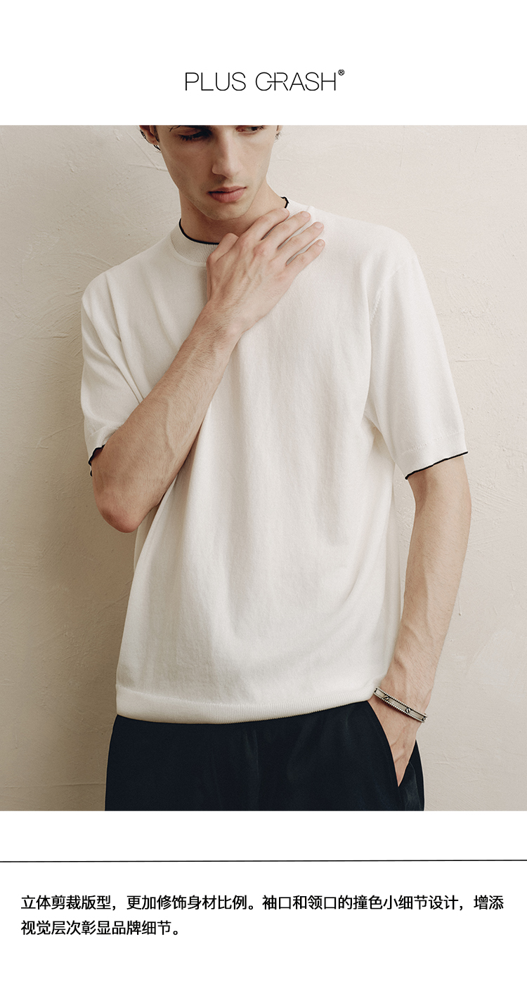 PLUS CRASH夏季新款莱赛尔短袖舒适透气圆领撞色时尚T恤衫半袖