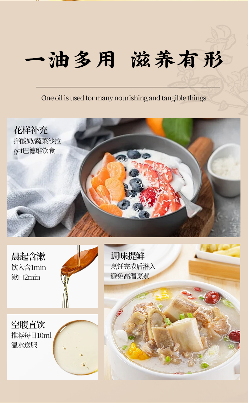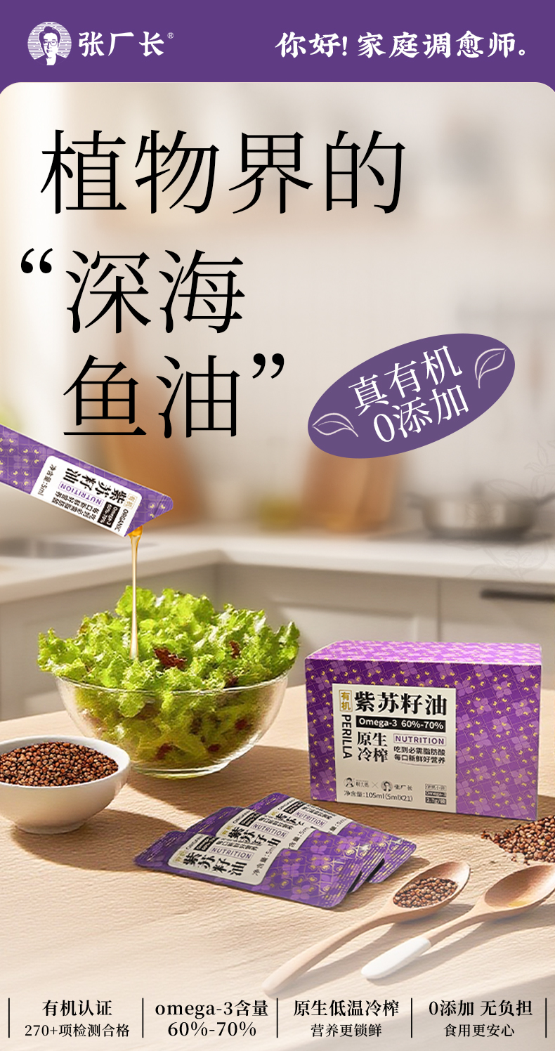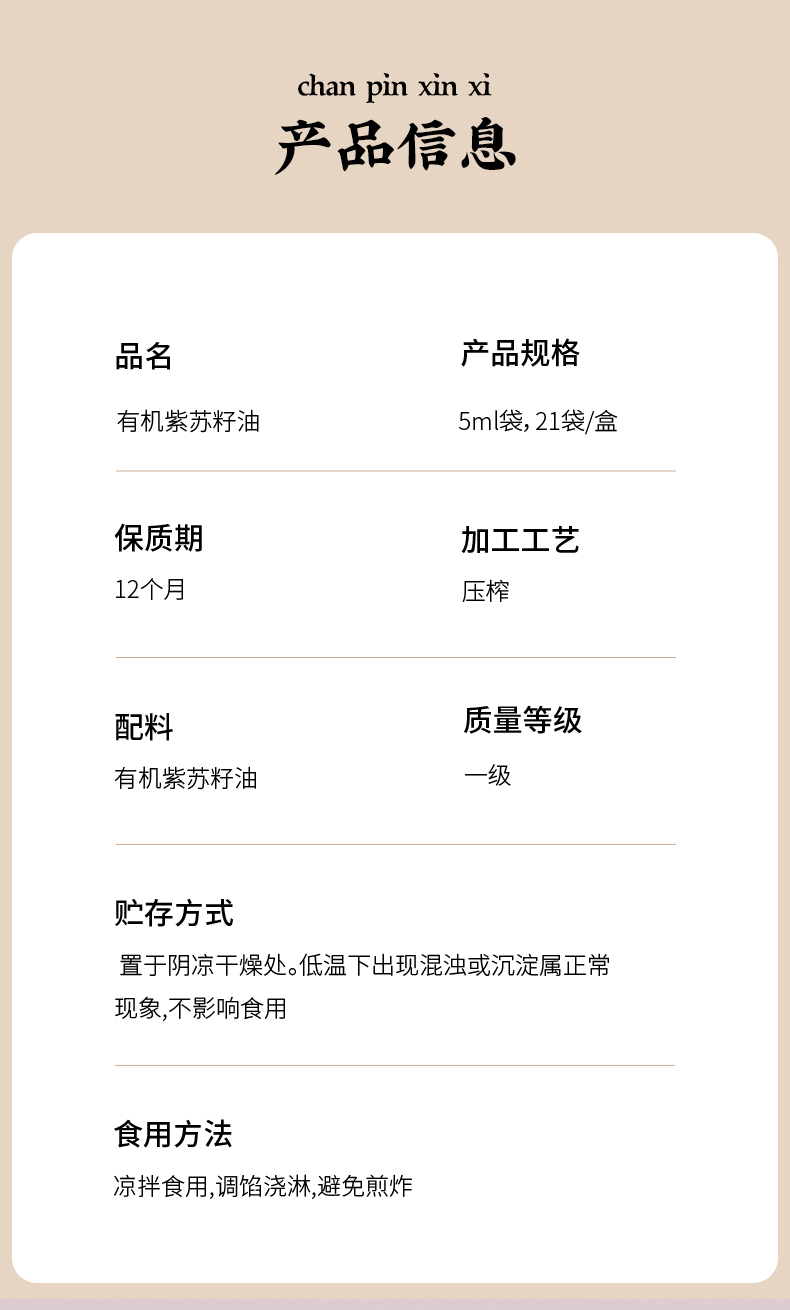 有机【紫苏籽油】凉拌、调馅、烘焙、浇淋