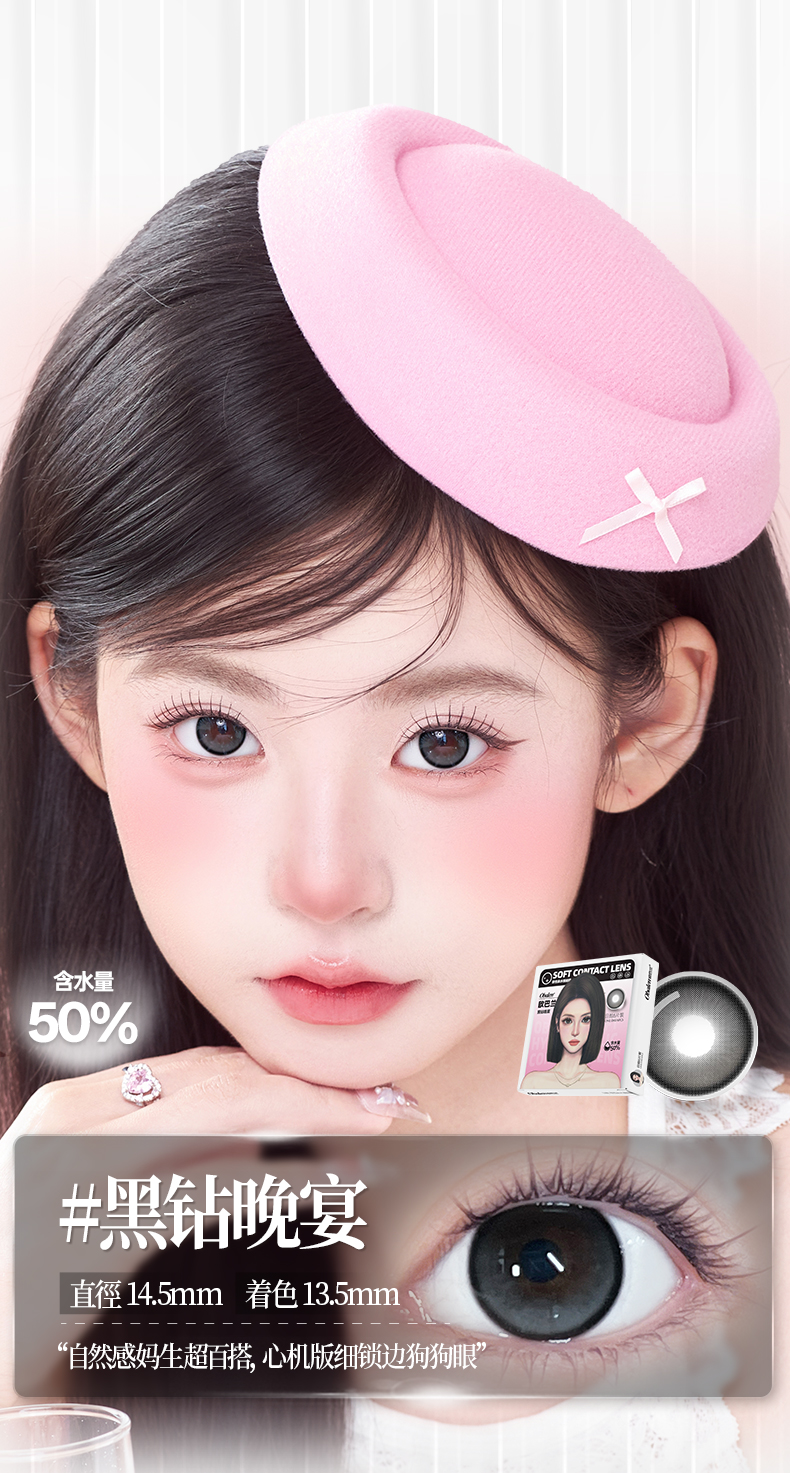 新款【黑钻晚宴】14.5大直径美瞳日抛6片装