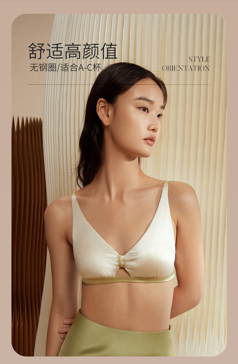 金三塔里外20姆米高弹桑蚕丝 舒适包容女士缎面无钢圈美蝴蝶文胸新品 NZFCC303