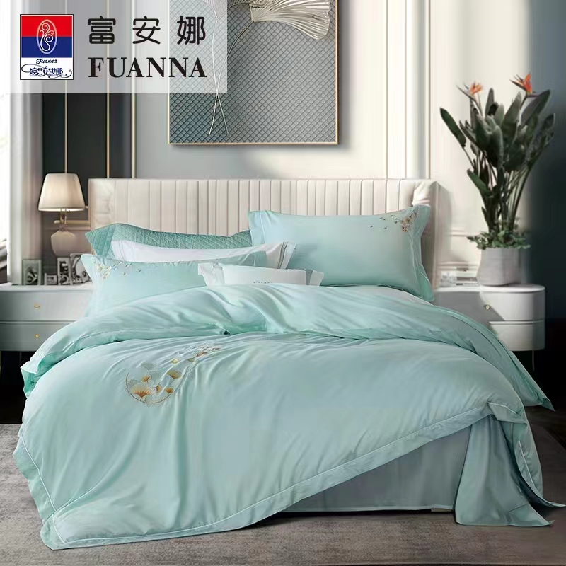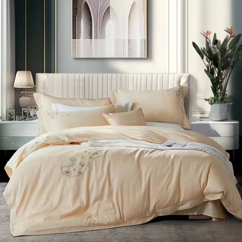 【6F】素绣床单四件 小确杏