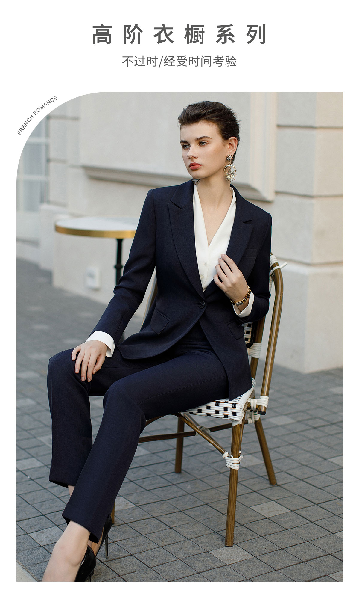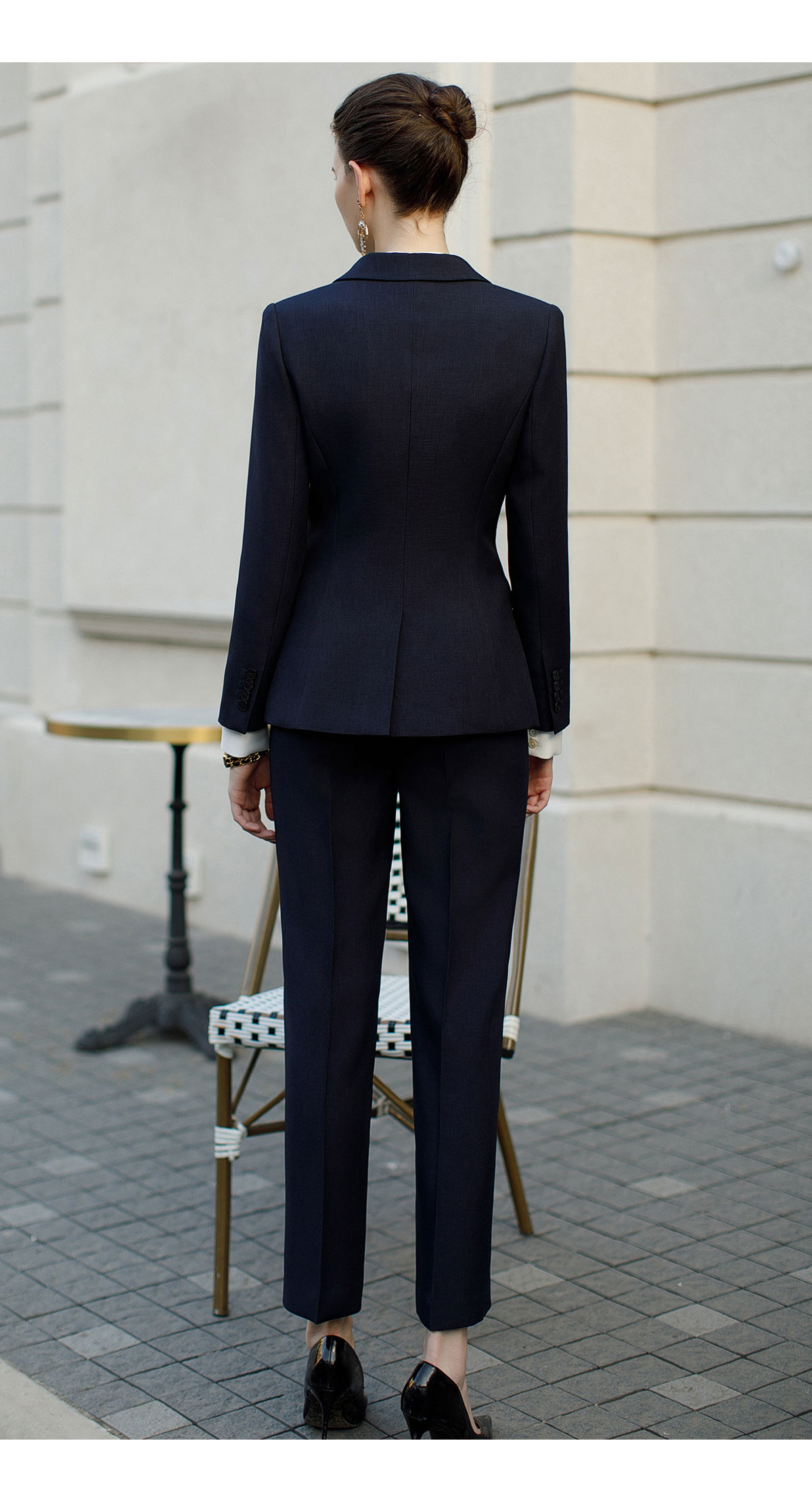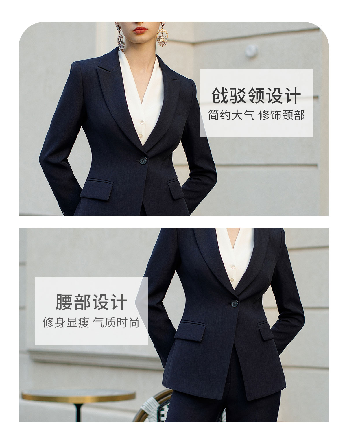 AD高端商务正装套装女藏青色职业装两件套时尚气质西服售楼部工装