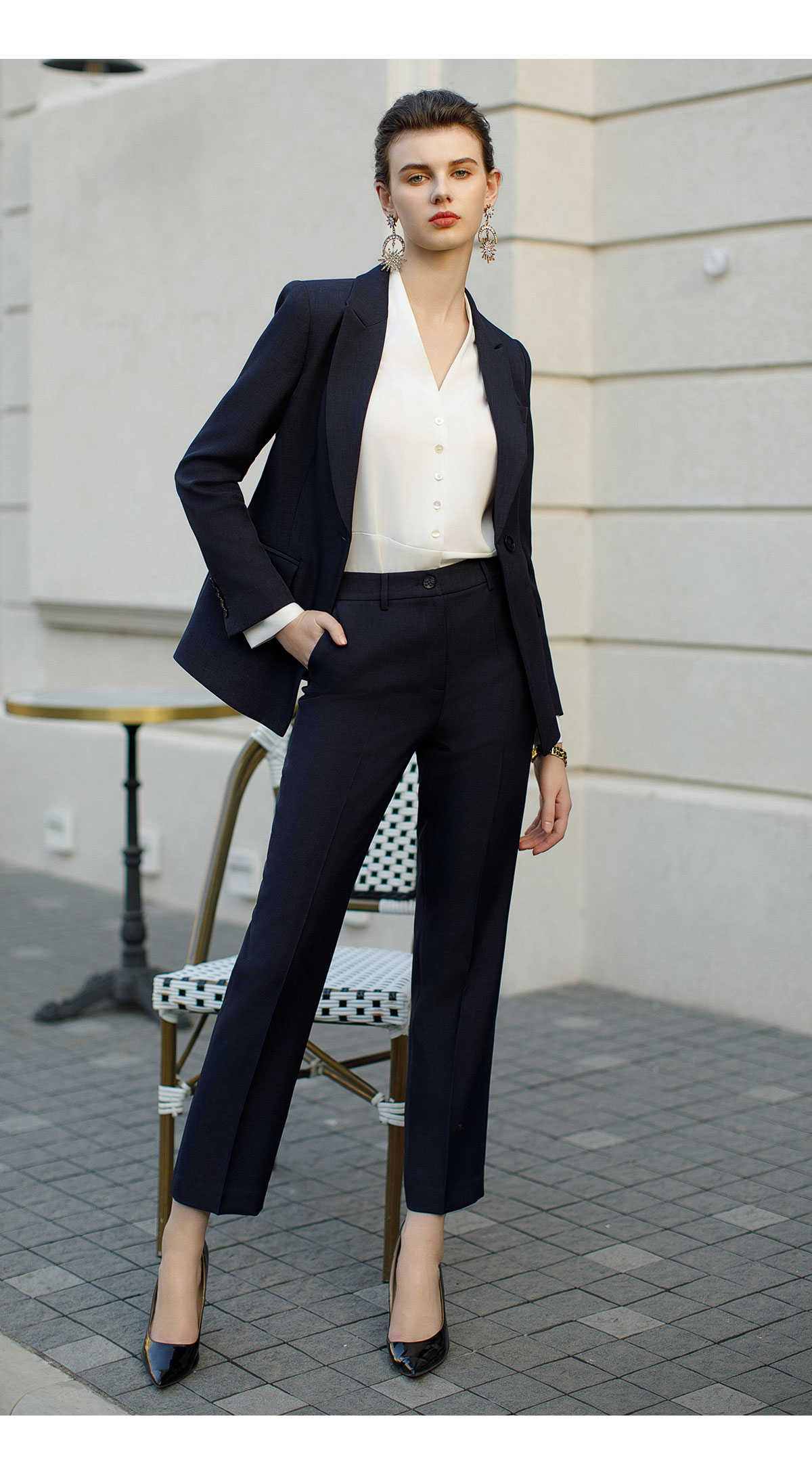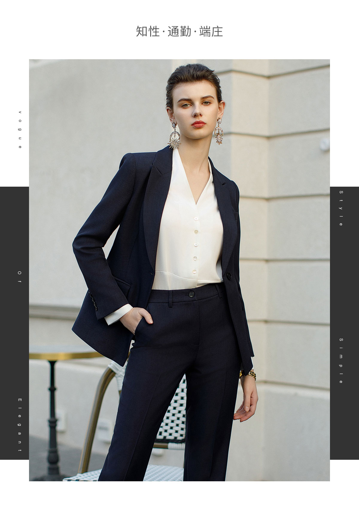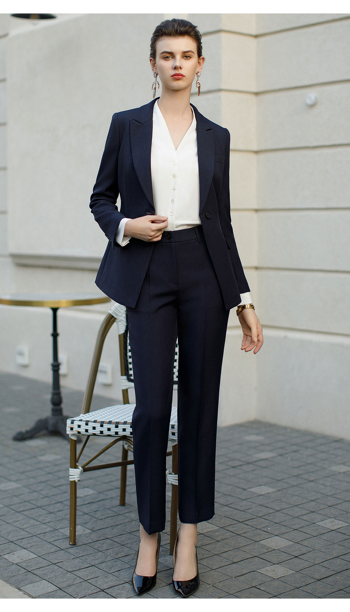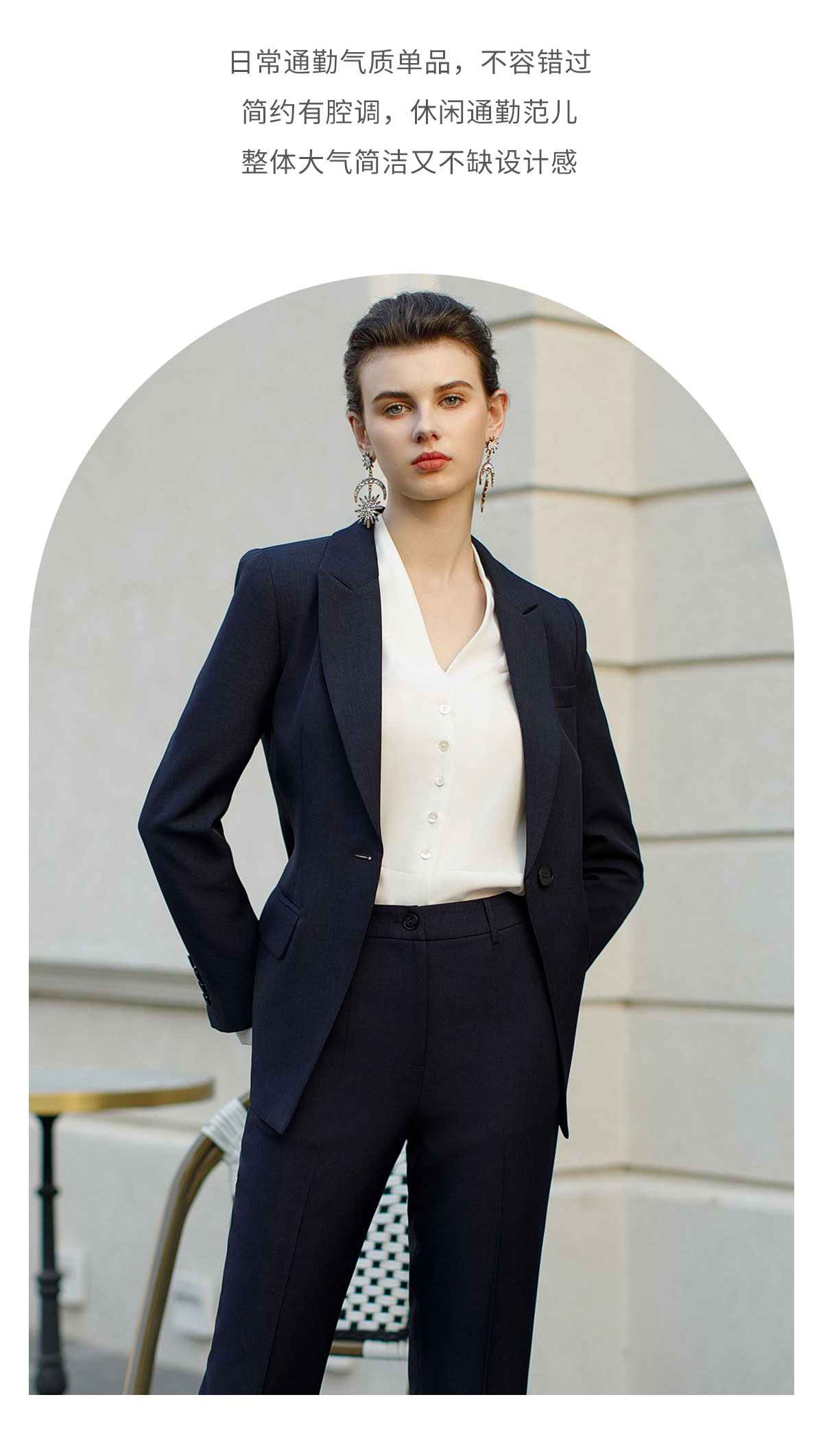 AD高端商务正装套装女藏青色职业装两件套时尚气质西服售楼部工装