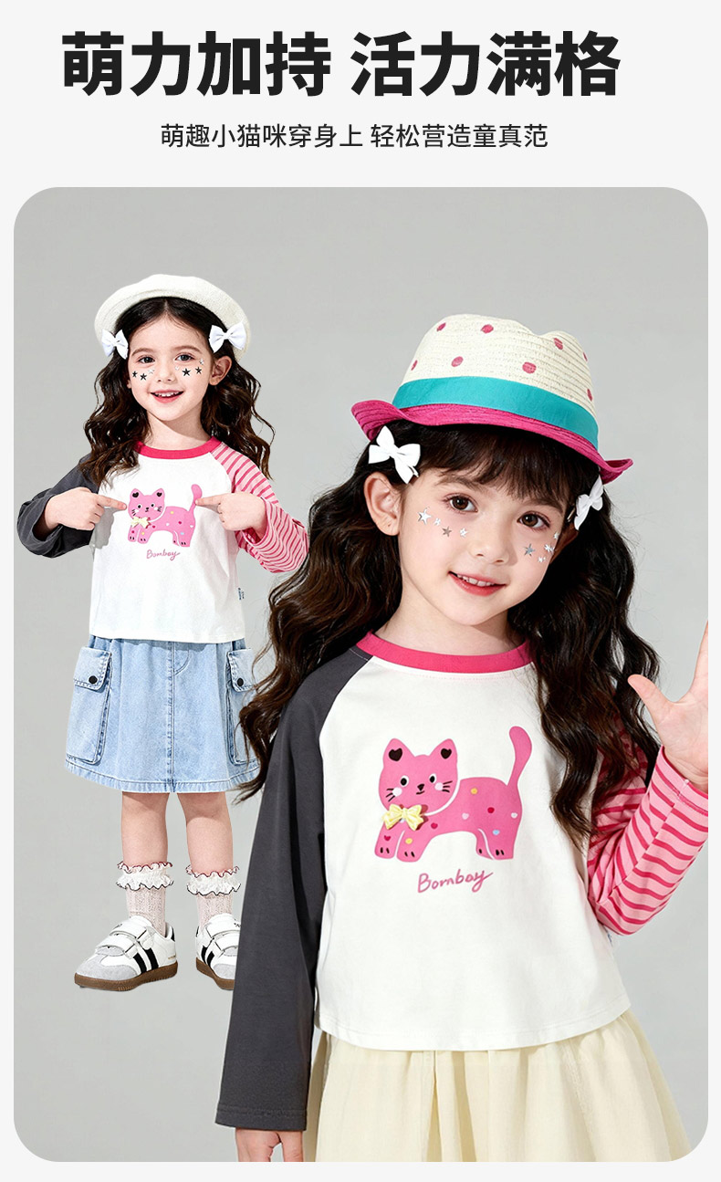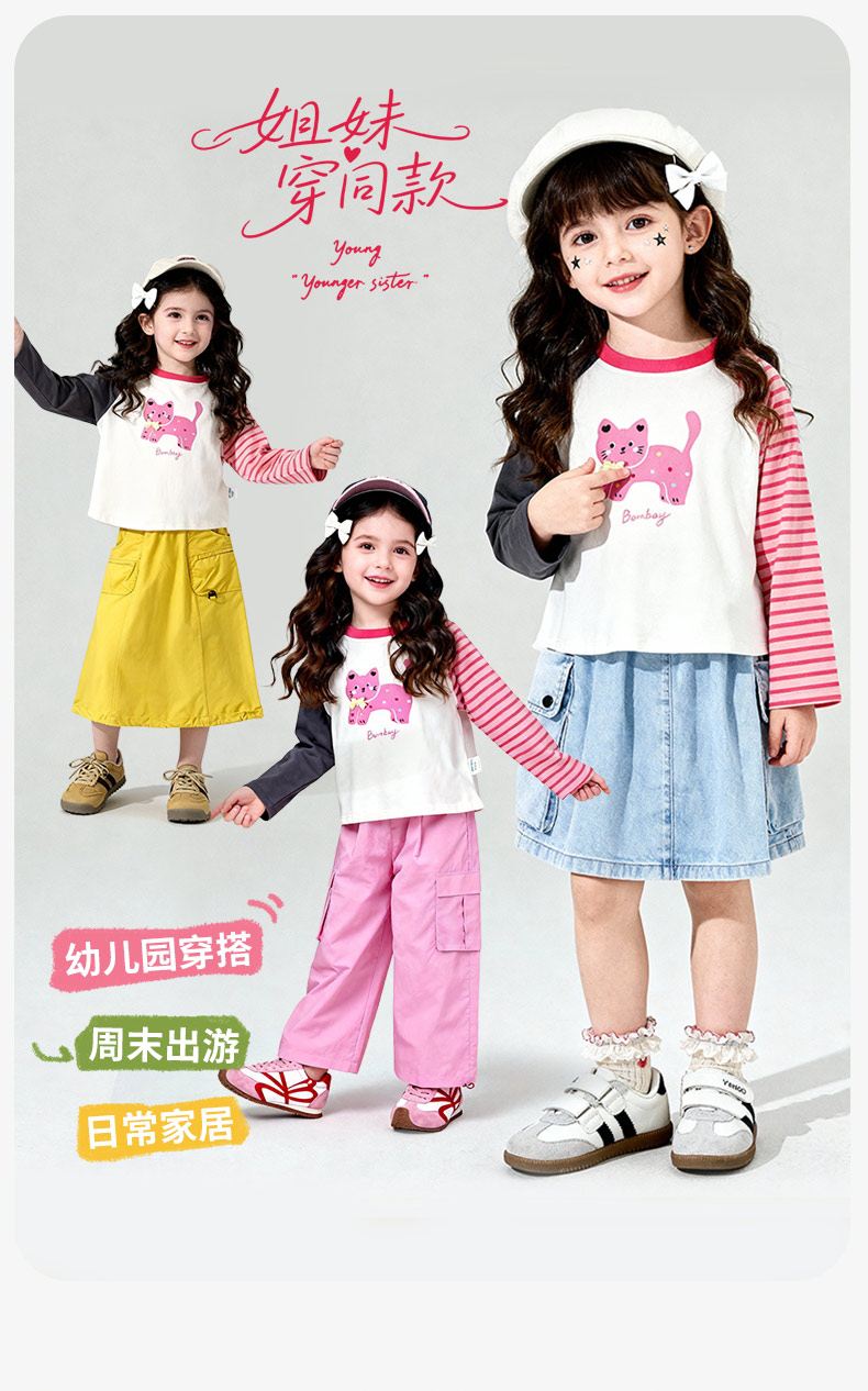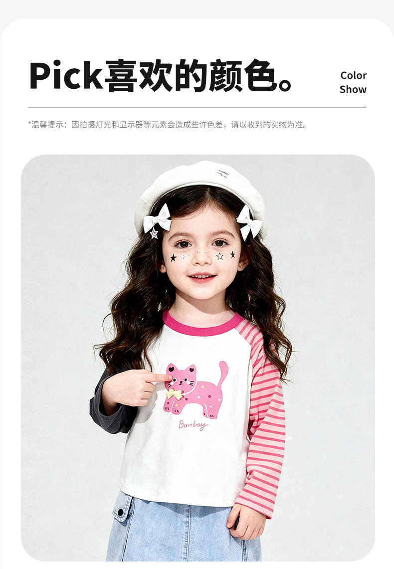 贝贝怡春秋女童新款长袖T恤