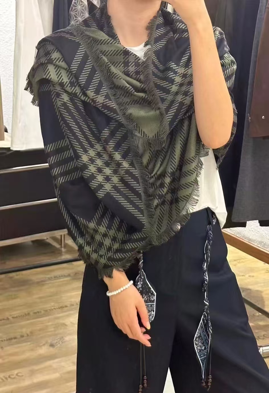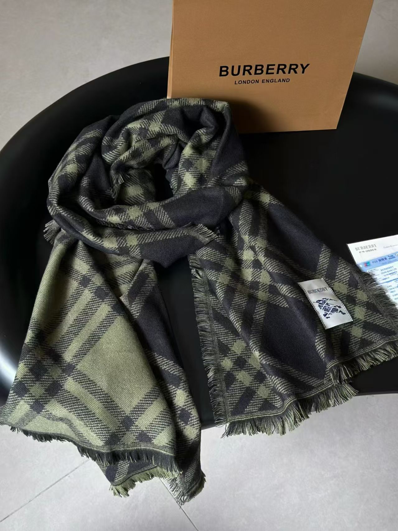 Burberry绿格纹披肩太美了~