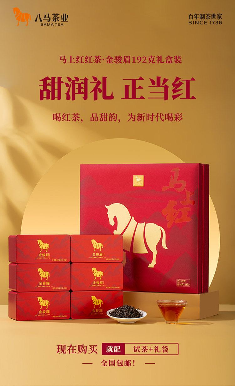 八马茶业 | 武夷金骏眉红茶特级红茶马上红高端茶礼盒装192g